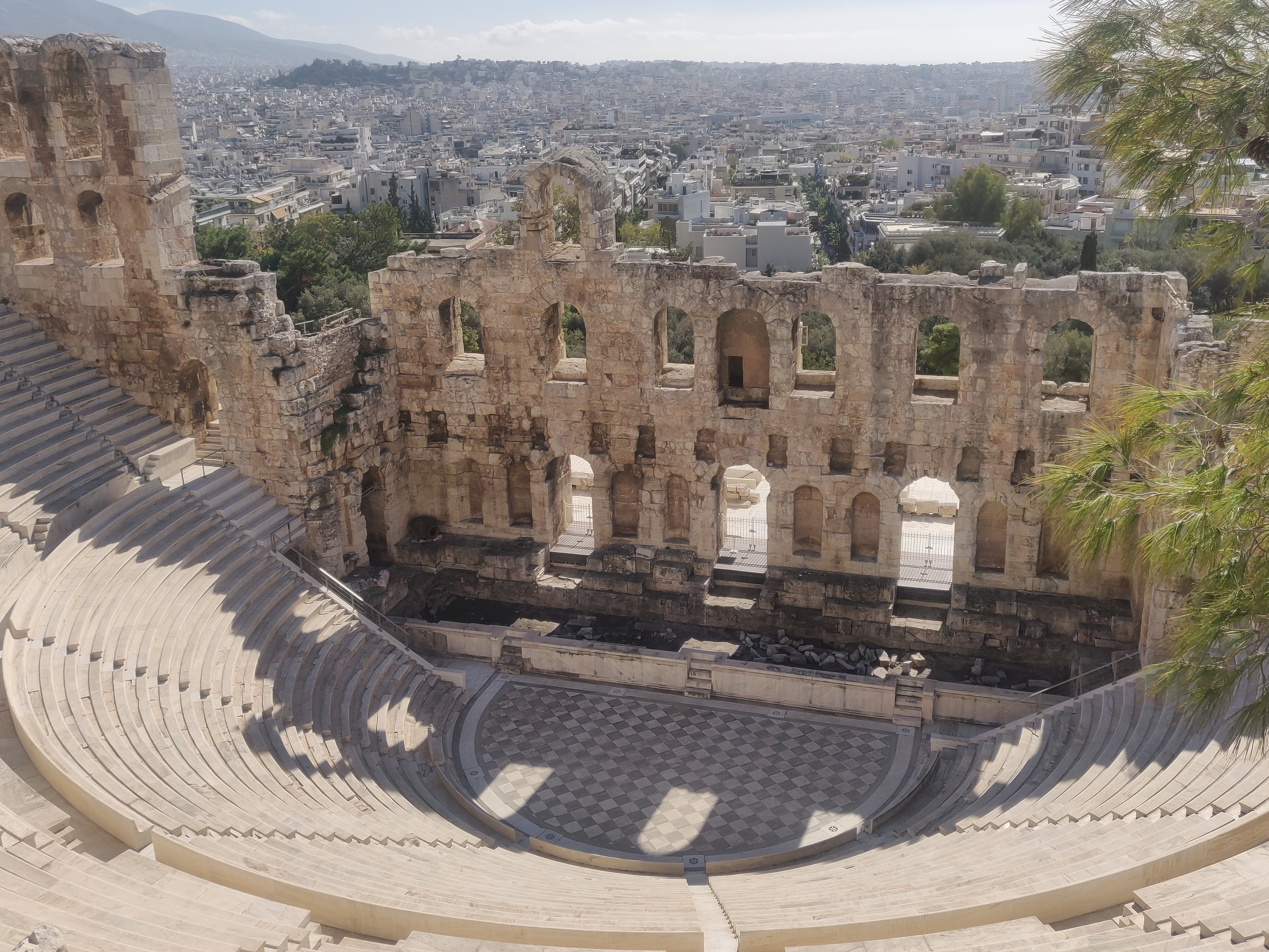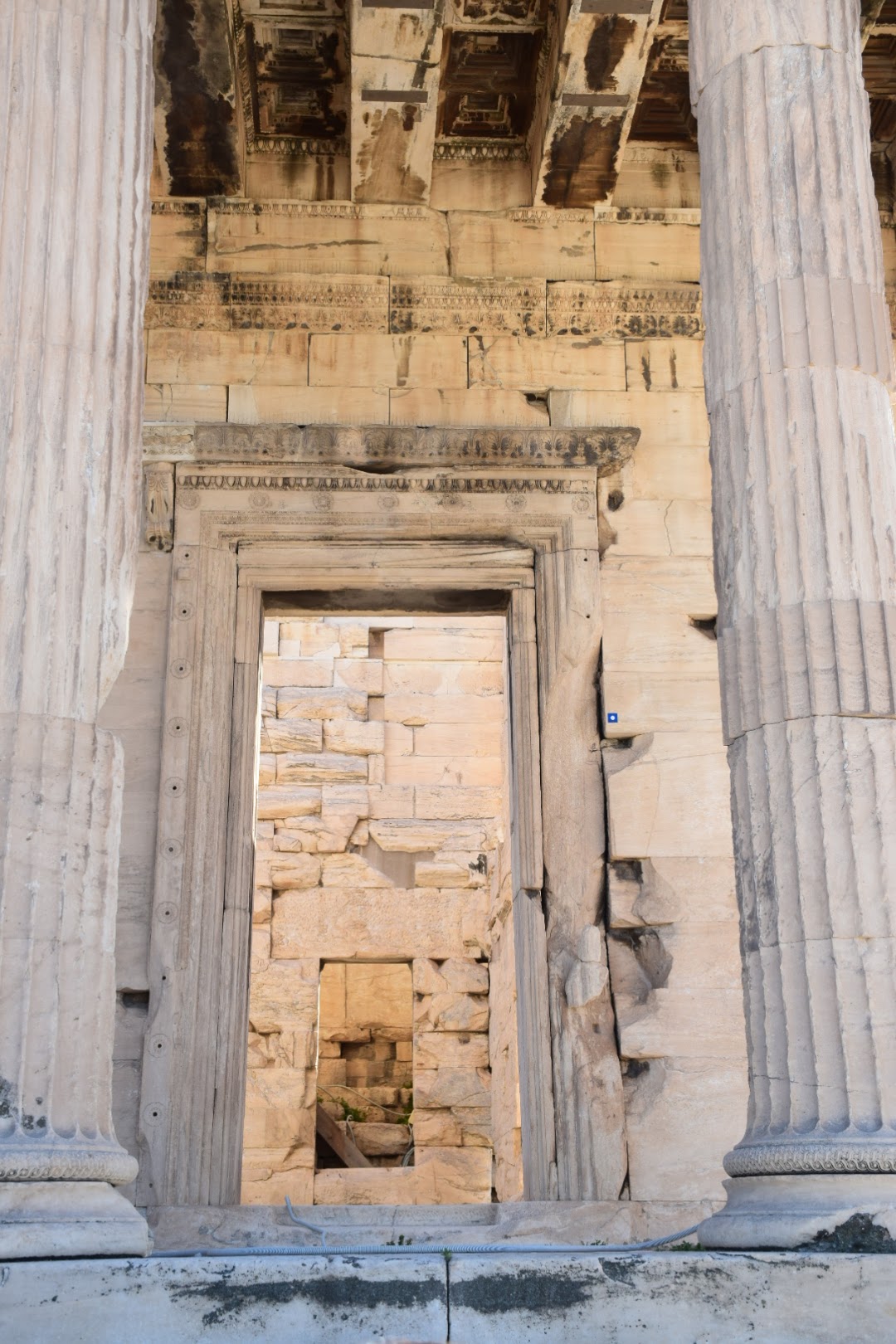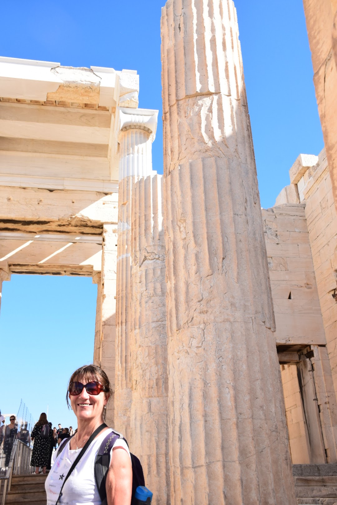 Onwards to sprawling Athens (we paid road tolls this time- a first for us) and what a surprising delight Athens was. This was our first visit and our expectations were low but in the November sunshine the city glowed. We parked in an underground carpark about 15 minutes walk from the Acropolis where the parking attendent was so helpful, I asked if he was a tour guide. I have wanted to visit theAcropolis for a long time and it didn’t disappoint – the photos describe it better than I ever could. The buzz of English speaking voices (British, American and Aussie)in the short queue was a novelty for us, we are usually surrounded by Greek voices (that shouldnt be a surprise in Greece). Outside the Pantheon, Caoimhin pulled a half bar of chocolate from his pocket, I had some in my mouth, when we heard a whistle blowing and a large middle-aged woman descended on us telling us that it was forbidden to eat. We apologised, swallowed our chocolate and laughter because as soon as we had entered the Acropolis, we had sat under a tree and happily munched on pasta salad and olives that we had brought with us without realising that we had transgressed any rules. But it entertained us to hear the frequent whistle and spot the latest culprit who had pulled out a sweet, a cigarette or gone the wrong way round although it wasn’t obvious which was the ‘right’ way. The markings on the votive pillars where almost three thousand years ago, people’s requests were carved in stone and offerings made for health or weath or the blessing of children. Little changes.