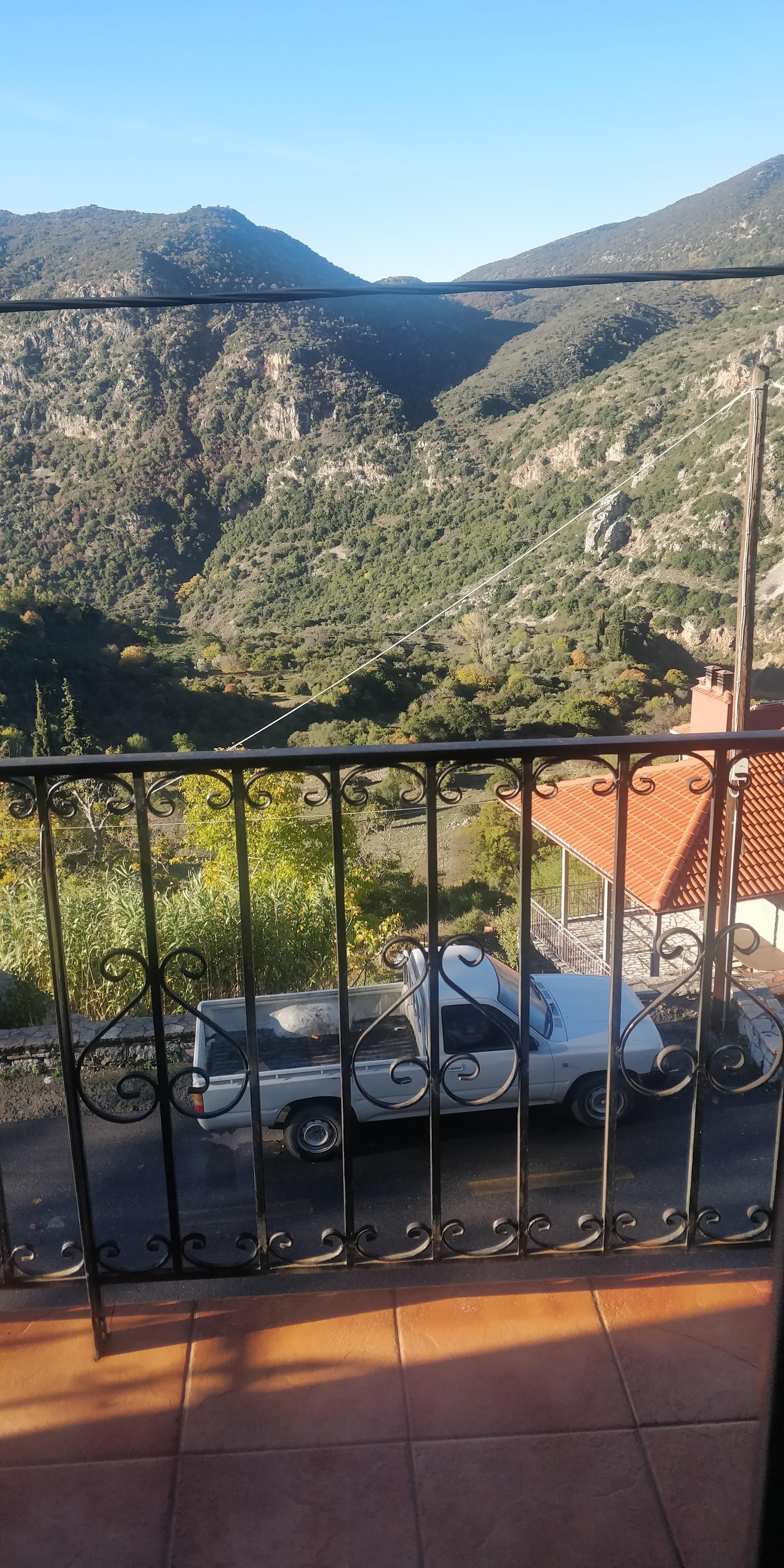 This week we have seen such diverse scenery in Greece from the rural idyll of Arcadia to the tourist throngs at the Acropolis. We spent three nights in Dimitisana, a beautiful medical village spread over two hills in Arcadia and on the Menalin Hiking Trail. We expected a sleepy hamlet but we arrived to a village heaving with Sunday daytrippers.It was almost impossible to drive through between parked cars, tour buses and pedestrians. We stayed in Sophia’s Stone House which was a cosy warm bedsit over a traditional restaurant (with wild boar burgers and rabbit stew on the menu) and with fabulous views over the mountain – at laest most of the time. In the evening when we had the place almost to ourselves.