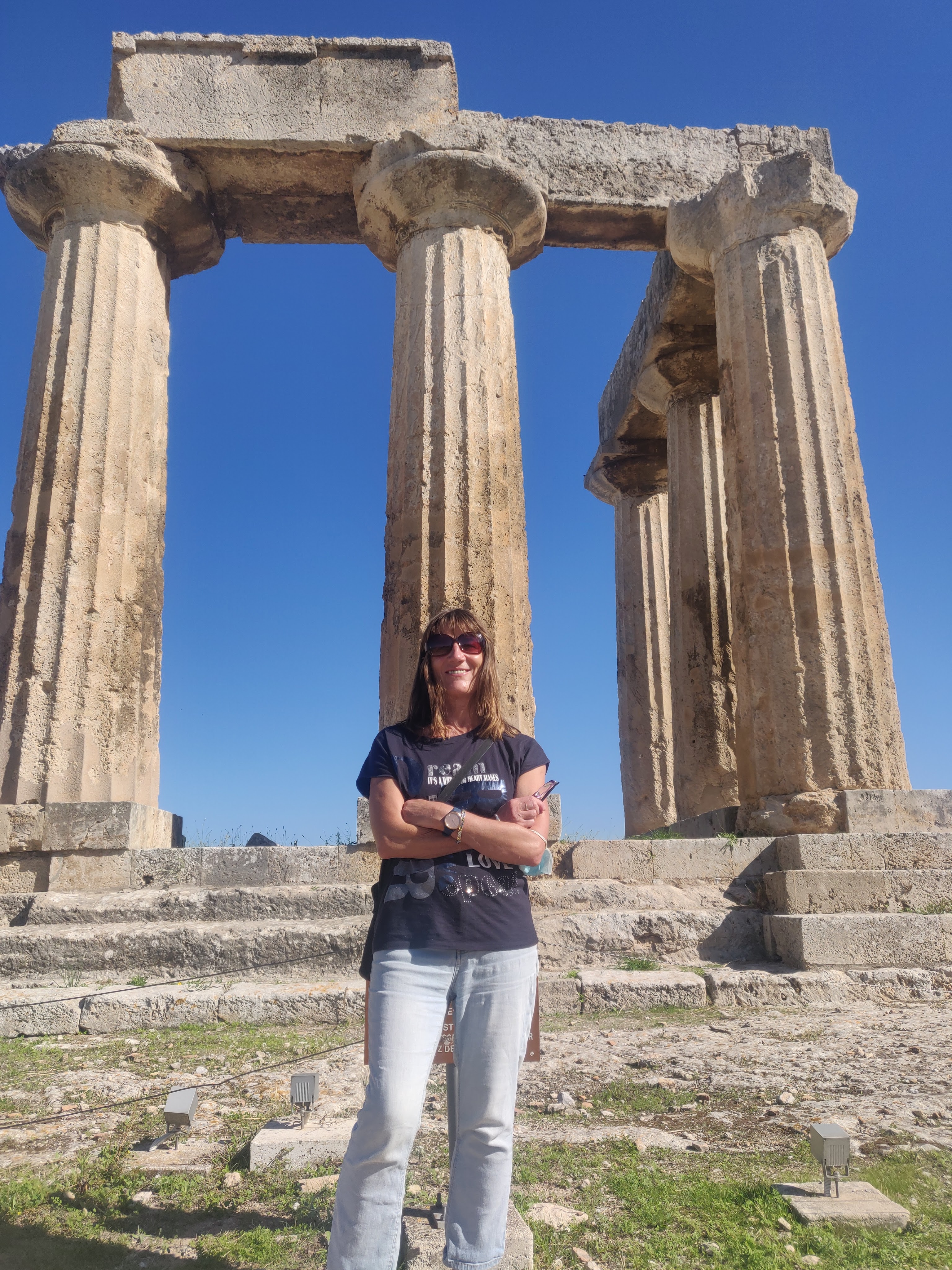Leaving Dimitsana in 8 degrees sunshine, we followed our usual guidelines of avoiding toll roads on our way to Corinth. About halfway there as we zigzagged around another corkscrew, we realised that we had added an hour to our journeyand by avoiding tolls but it was spectacular even if I felt a little carsick going over the mountains. But we also passed by vineyards, ploughed fields and a countryside of splendid colour. Ancient Corinth was warm, compact and well organised with a good museum and an army of middle-aged women policing a well-marked one way system around the ruins. St Paul was here and wrote his many letters to the Corinthians and this is where he was tried – and acquited – for illicit preaching. We stayed in an apartment in the new city in a regular apartment block. The entrance and stairs was dirty- and smelly- but inside our front door was a well-equipped, clean apartment and a warm welcome from Elena, who gave us a carafe of red wine, pomogrannate liquer (disgusting but that’s beside the point), water, homemade fig jam and a fridge stocked with crackers, water and eggs. Elena had inherited the apartment from her grandmother and had installed a new bathroom. But it gave us an idea how most Greeks live – in small dark apartments with few windows as natural light – and heat – is the eneny for most of the year, The only window opened onto a tiny balcony that looked down on a rubbish strewn courtyard. But the residents were friendly, when we hit a doorbell instaed of the light switch in the dark corridor, the old lady who answered just laughed at us and waved off our apologies.