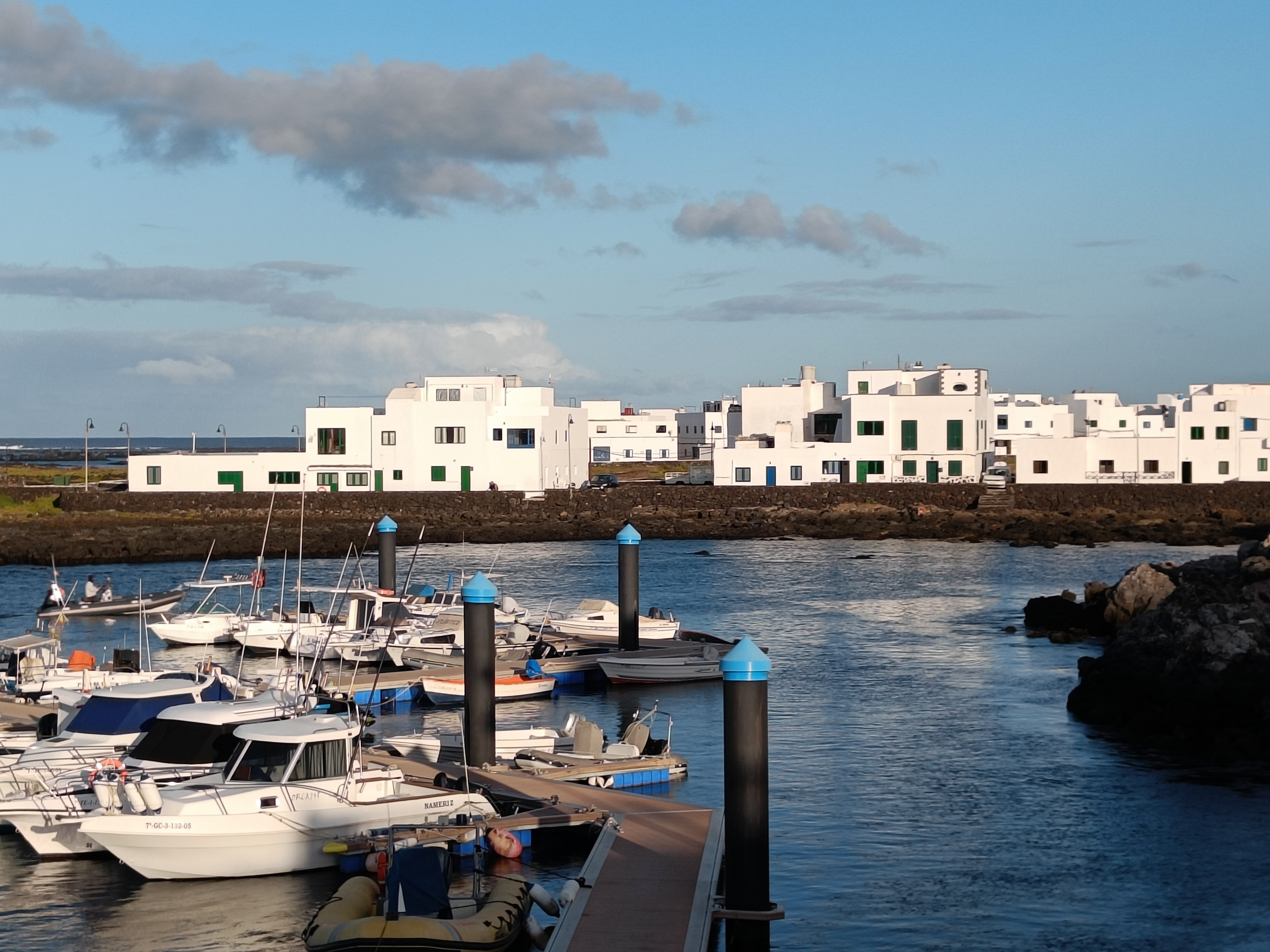 In the early mornings we strolled around and met many of the same characters queueing for the panaderia (bakery). The rhythm of the day started again with the fishermen gathering their nets and heading towards their blue boats and the ferry crews getting ready to start up and the smell of bread and diesel in the air. Later the barges came in carrying essential supplies and even a pile of Amazon packages with their tell-tale logo….so even islanders need retail therapy… and maybe more so on an island without any resources where all water has to be pumped across from Lanzarote. After three days and two nights, we felt almost local ourselves and it was a wrench to drag ourselves away from this blond island but we can hear the call of home ….. so its a ferry back to Ozsola, a bus to Arrecife (the capital of Lanzarote) a flight to Tenerife and then onwards to Dublin on May 1.