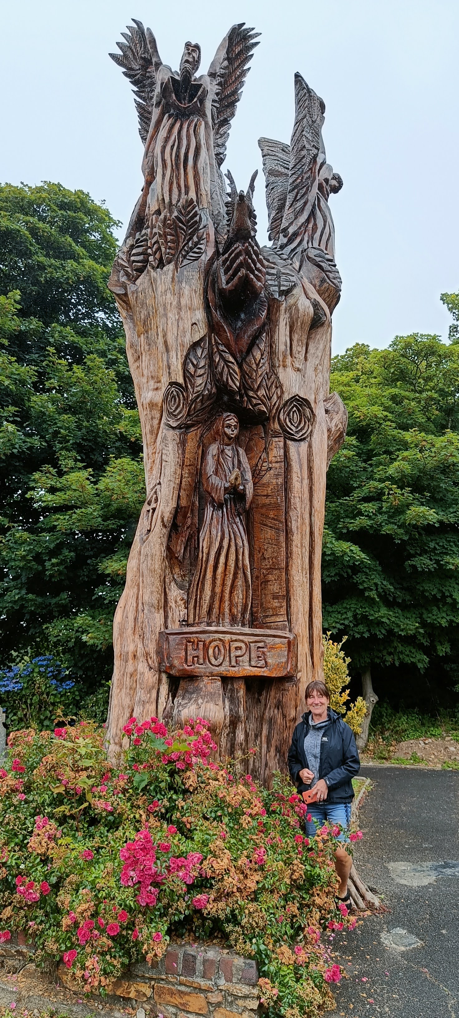 Our first stop was Fenor, a small village known for its boardwalk bog walk (a naturally regenerating fen habitat and a haven for wildlife). There’s also an incredible wood sculpture in the church yard – The Angel of Fenor, carved from a tree trunk. We dodged the rain at Mother McHughs, a cosy traditional pub that was packed with a good-humoured stag party on a pub crawl. Although it was only about 5,30pm, it wasn’t their first stop of the day and the noise level was deafening – dropped dramatically when they left, leaving unfinished pints but their bus was leaving and they had another ten pubs to go.