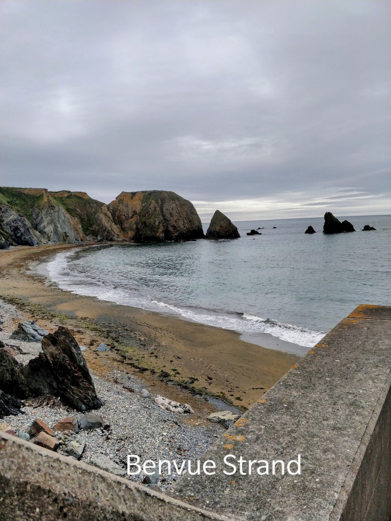 We could have headed on to Clonea Strand and Dungarvan but instead we turned back along the coast to Bunmahon. You get a different perspective when going in the opposite direction and the views were even more spectacular if anything. Bunmahon was the centre of the copper mining in the nineteenth century and has a really informative Geopark Visitor Century (we didn’t visit this time but have been there before) and a geopark garden where the rocks are arranged like a walk through time…which seems infinite here. The beach is long and lovely with a boardwalk over the dunes but its mainly a surfing beach – beware of dangerous rip currents. We relaxed in the beer garden in the Engine Room Bar/ Café in Bunmahon and after some food and a drink, we parked Spuds for the night on the hill among the wildflowers above Kilmurrin Strand, another gorgeous beach. We watched the sun go down and the moon come up and marvelled at the comfort and flexibility of travelling in a small campervan like Spuds, the ability to pull in almost anywhere and really enjoy nature -and a glass of wine- in stunning surroundings, truly a 5 star experience.