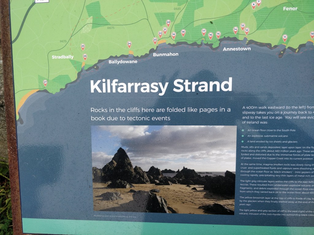 The Copper Coast lies between Tramore and Dungarvan with probably the most spectacular coastline in the country – stunning beaches, small secluded coves, winding coastal roads, amazing geology and a rich history. It got its name from the 19th century copper mines in the area and was designated an UNESCO Global Geopark in 2015. In the past, we have driven it, cycled it and walked sections of it and each time, we are wowed all other again. The question that we keep asking is why this area isn’t a ‘must see’ destination at the top of people’s lists.