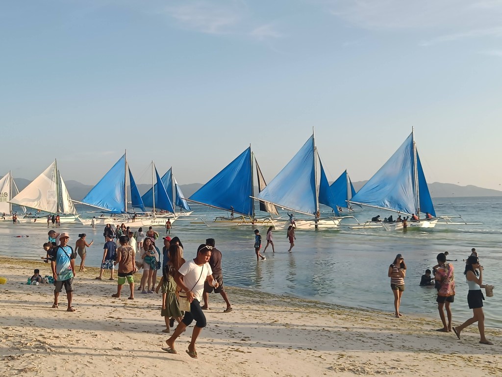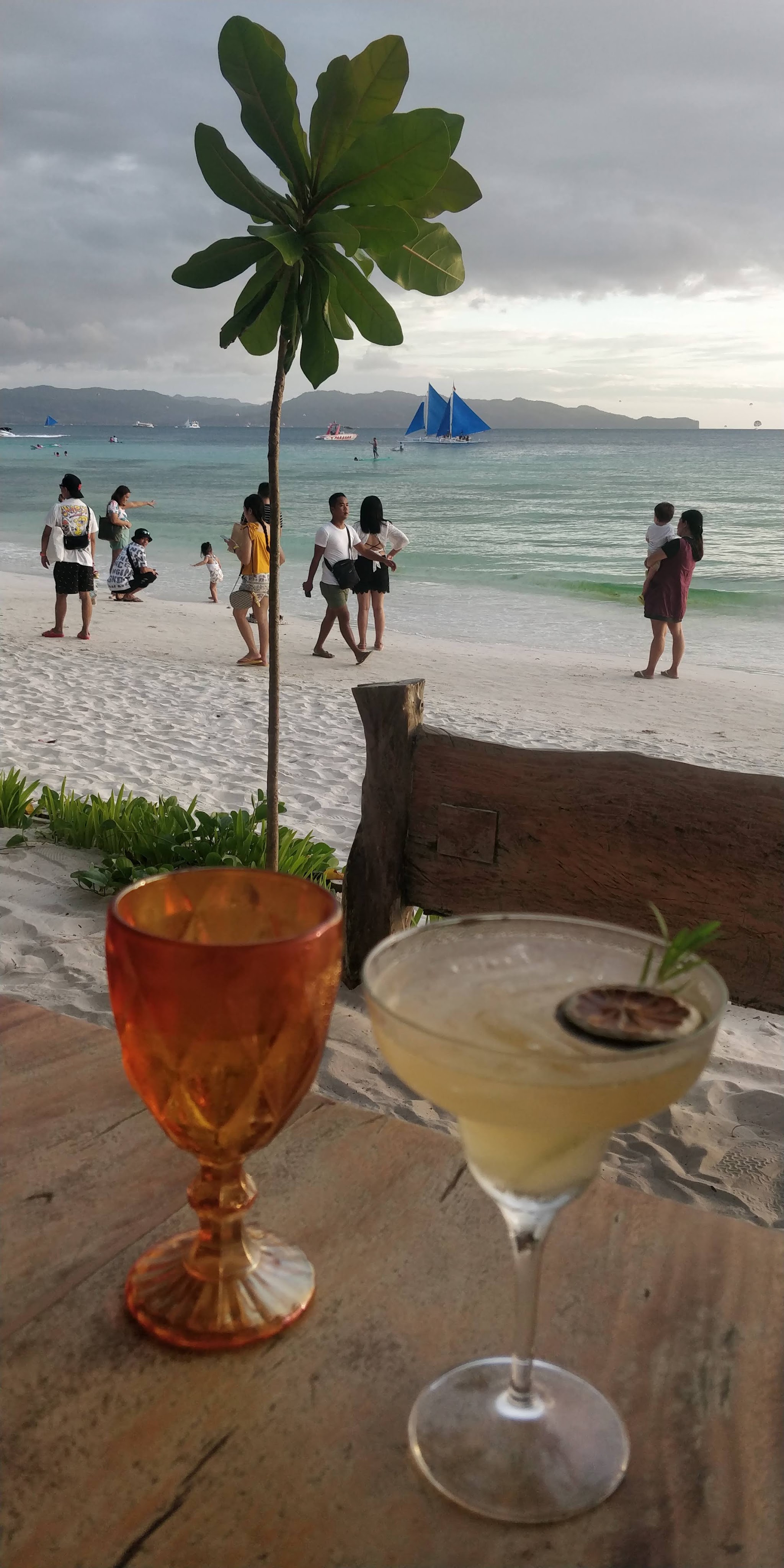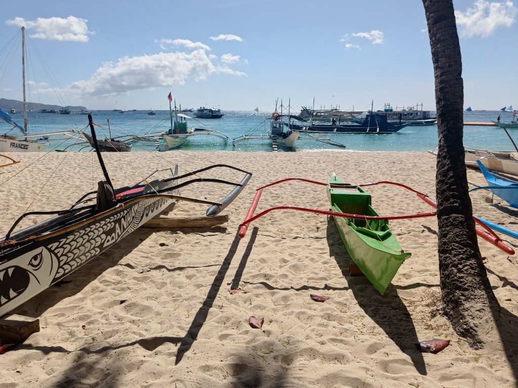 The majority of the visitors were Asian package tour groups, only a tiny fraction of the visitors were backpackers but that meant that there was an incredible variety of food available. We ate Japanese food, Korean ice-cream (surprisingly delicious), Thai dinners and even found some French pastries. One morning we rose at dawn (about 6am) in an attempt to enjoy the beauty of White Beach without the hordes of tourists and touts.  The air was soft and fresh and it felt as if the island had been reclaimed by the locals, going about their business without tourists.  ferrying children to school – many schools here start at 6.30 am,  sweeping and cleaning. But as soon as we stepped on White Beach, we found that we weren’t the only early risers, the place was packed with tourists, mainly Asians posing in search of the perfect Instagram shot which required lots of time, infinite patience, numerous  retakes and rejections until acceptable perfection was reached. At first we stopped so that we weren’t photobombing their shots but there was no end in sight so we just kept walking. It was laughable – young women (mainly) lying in glass bottomed boats, trailing fingers in the water creating the illusion that they were in the middle of the ocean instead of half a metre from shore. But maybe we could learn from them…if only we weren’t too busy enjoying the moment to capture it.