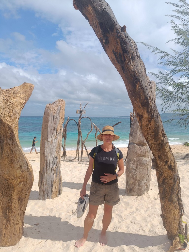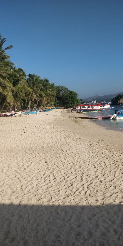 Boracay is beautiful. Lying on that silky white sand looking up at the swaying palms overhead, it was possible to zone out  the crowds. Swimming at dusk in the calm clear waters at the very Northern end of White Beach while watching a phenomenal sunset, was truly enriching. We walked to the highest point, Mt Luho with views of secluded coves, the golf course and the shells of several derelict hotels, abandoned through economic hardship or through contravening planning regulations.  We hiked to Puka Beach, famous for its shells where a lovely local man took photos of us (the cheesy ones with the hearts) while his twelve year old daughter danced on the beach, making a TikTok video. He hoped that some wilderness would be left on the island for nature and home for the monkeys, the pythons and the flying foxes.  The longer we stayed, the more beauty we found on the island and in the seas around it..
