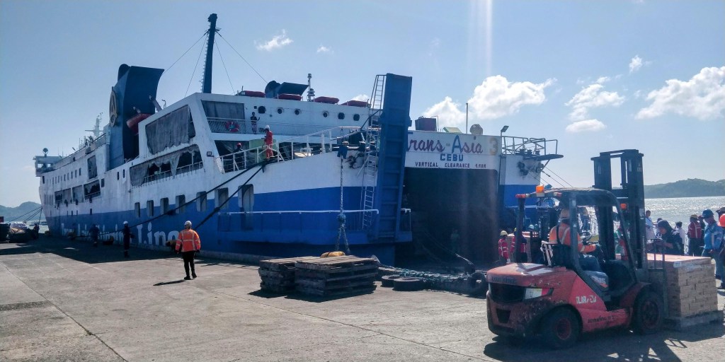 The appeal of Boracay was like a magnet, pulling us in that direction. We were curious to find out why this little island was so special in a country with over seven thousand and six hundred islands, many of the ones we had visited so far were undeniably beautiful.  But our road to paradise was long and arduous. It began with a fourteen hour ferry from Cebu, the Philippines second city after Manila, to Iloilo, the capital of Panay Island. We sailed from Cebu at dusk when the beauty of the setting sun masked both the frenzied activity in the port and the squalor of the nearby streets – hanging telephone wires, broken pavements, fumes and gut-wrenching smells.  The overnight journey cost about €20 each but the ferry was a rust-bucket, probably a charitable description. The steward told  us that they were in the process of renovation but we weren’t sure we believed him. On the positive side,  there were beds for everyone in two different classes, economy class was 5 long rows of bunk beds on deck with canvas sheeting pulled down for shelter from the (warm) winds. Tourist class had air-con and eight bed cabins, four sets of bunk beds. There were no flushing toilets for anyone, just a huge vat of water with a water scooper to put water down the bowl. No water in the taps either. Two large white lumps of air fresheners placed beside the sinks didn’t mask the smell but added a layer of cloying floral something. The restaurant was merely a counter that served Pot Noodles and cold rice &chicken in a white styrofoam tray. But the worst part was the huge number of stowaways – whole families of cockroaches were everywhere.   Most of the human passengers simply crawled onto their bunks, turned over and stayed there for the duration of the journey. When we saw that we had a baby in our cabin, our hearts sank but he was a gorgeous little 7 month old and although he was very good, of course he cried during the night.  I slept surprisingly well, barely aware of the baby or the alarm clock going off in someone’s bag at 4am. The fourteen hour journey stretched to fifteen and a half and by the time we reached Iloilo, we swayed down the plank on sea-legs and growling stomachs. Iloilo was by far the cleanest city that we have visited in the Philippines but we went straight to the bus station to catch a bus to Caticlan. We had about 5 minutes to spare before the bus departed. While the ferry was a disappointment, the bus was clean, efficient and surprisingly roomy but we were glad to reach our destination after 6 hours on the bus mainly along by rice fields with a welcome stop at a local restaurant where we gobbled plates of noodles, rice and delicious fried fish.