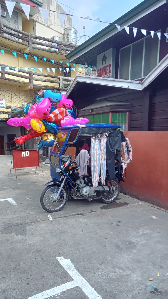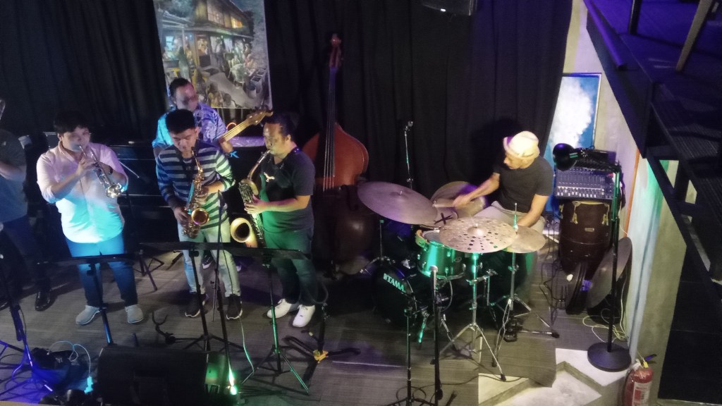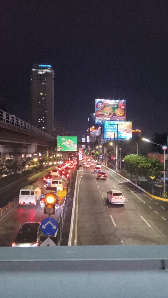 Karaoke started up on the boat as we approached Manila…maybe to celebrate a safe arrival after 17 hours at sea. Manila port was busy with cargo ships and fishing boats , the water full of floating debris and the odd jumping fish. When we disembarked, the traffic was appalling on that misty overcast Friday. We walked in circles around the stinking streets in the port area looking for a taxi – usually we are pestered with taxi-drivers when we want to walk. Huge lorries barrelled along within inches of our feet. Eventually a man wondered what we were looking for and pointed us in the direction of taxis a couple of streets away. It took more than an hour and a half to drive ten kilometres. When we got to our hotel (RedDoorz near EDSA camp), the room was tiny – we had more space on the boat. There was a pile of festering rubbish on the street corner outside and a woman and baby sleeping on the other corner. So we were thankful that we had a roof over our heads. The area was a bit rough but we stumbled upon a Jazz club down a quiet leafy street (the only leafy one in the area) We counted our blessings, listening to live music and sipping cold beers.