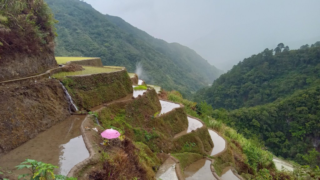Banaue was a stunning area of natural beauty with deep valleys, waterfalls, rivers traversed by swaying rope bridges, and of course rice terraces. Many of the terraces were two thousand years old and created by the Ifugao people with their own distinct rituals and customs. This was an area that was perfect for hiking along irrigation channels and ancient paths that hugged the contours of the mountains. A head for heights and a sense of balance were certainly an advantage. The terraces were of varying sizes and steepness, sometimes shrouded in cloud and mist, but the vividness of the green rice stalks was incredible, especially after rain as if newly scrubbed. The heavens opened most afternoons in torrential downpours, but even in the rain, it was a pleasent 22 degrees.