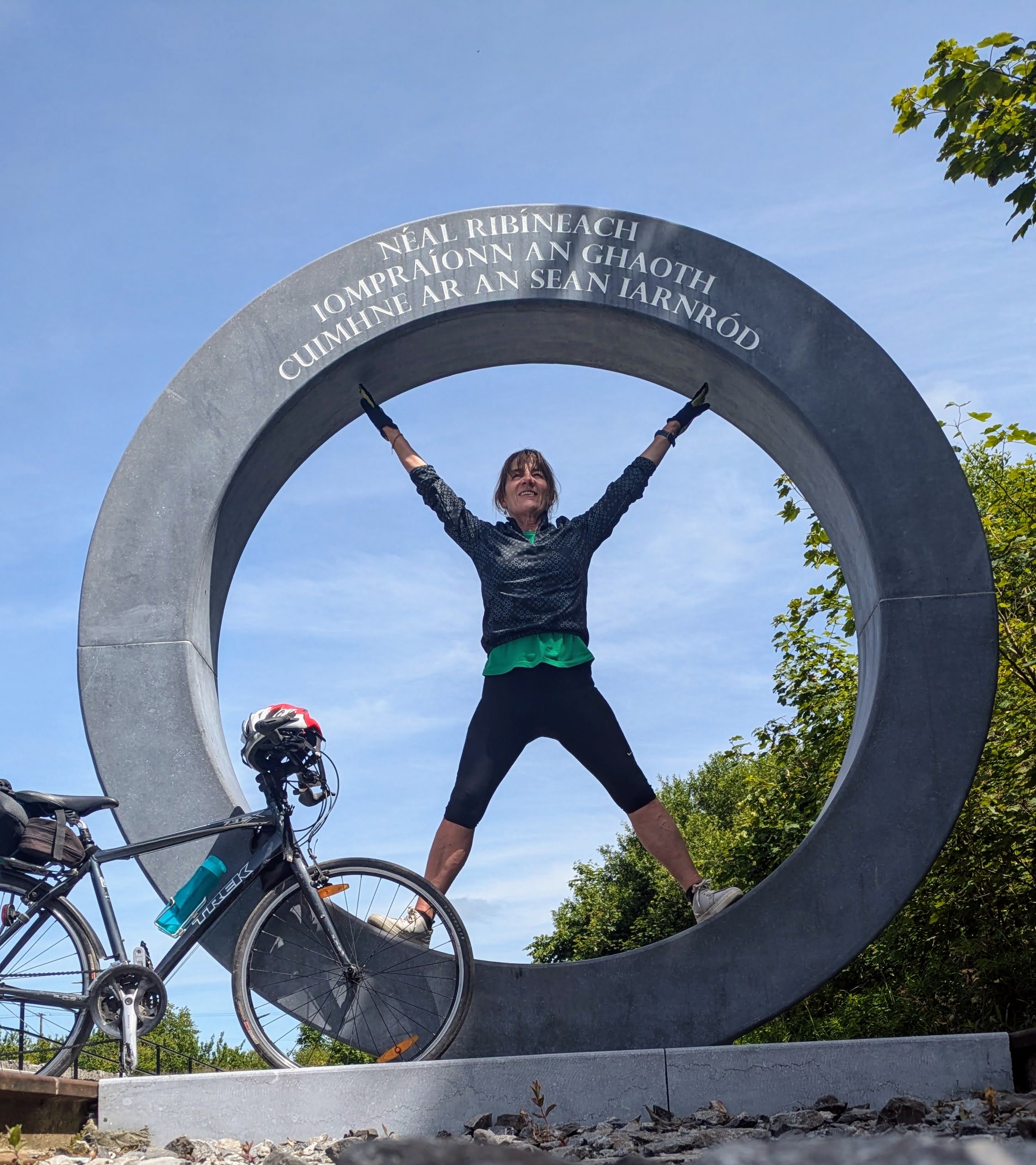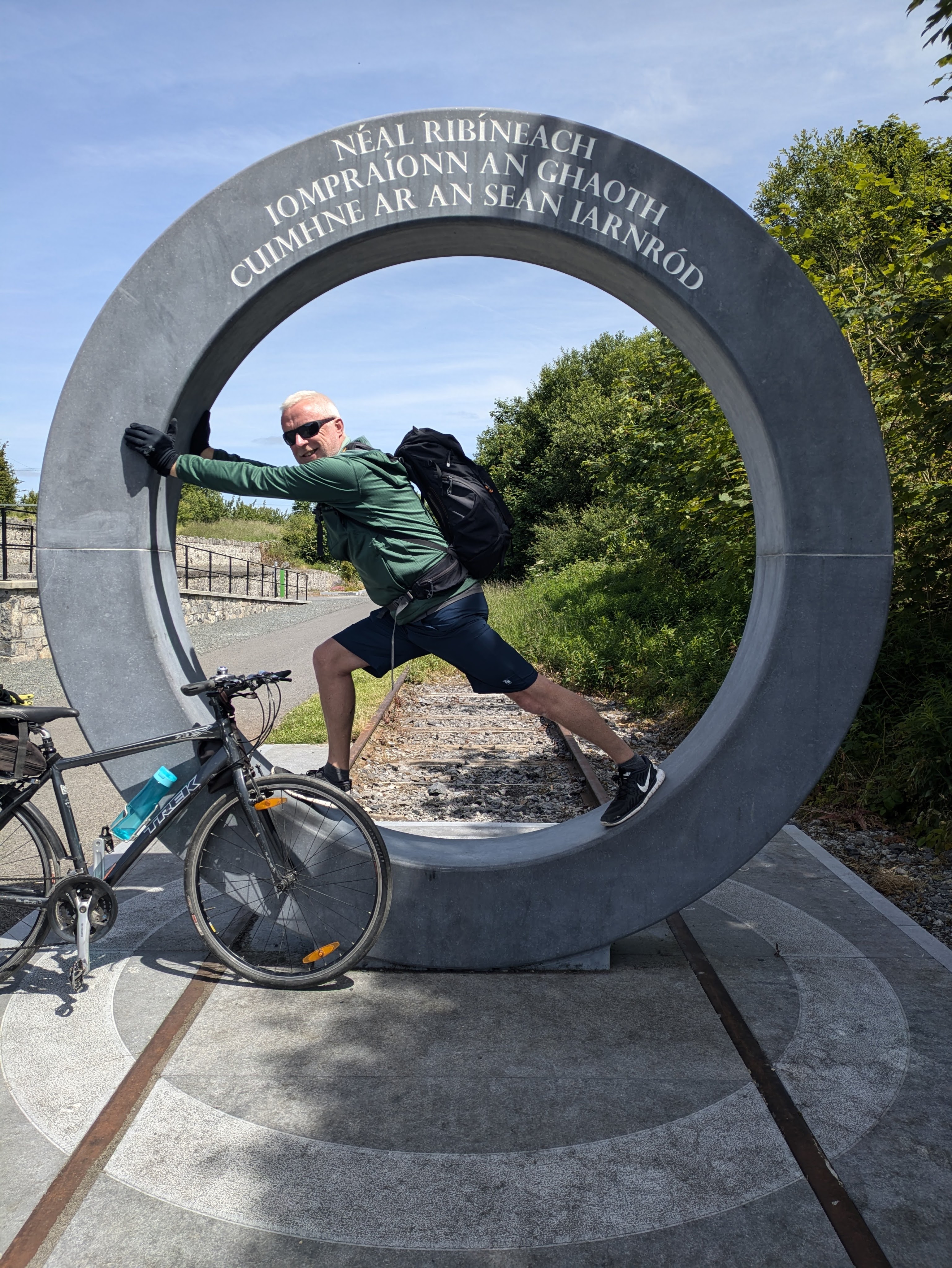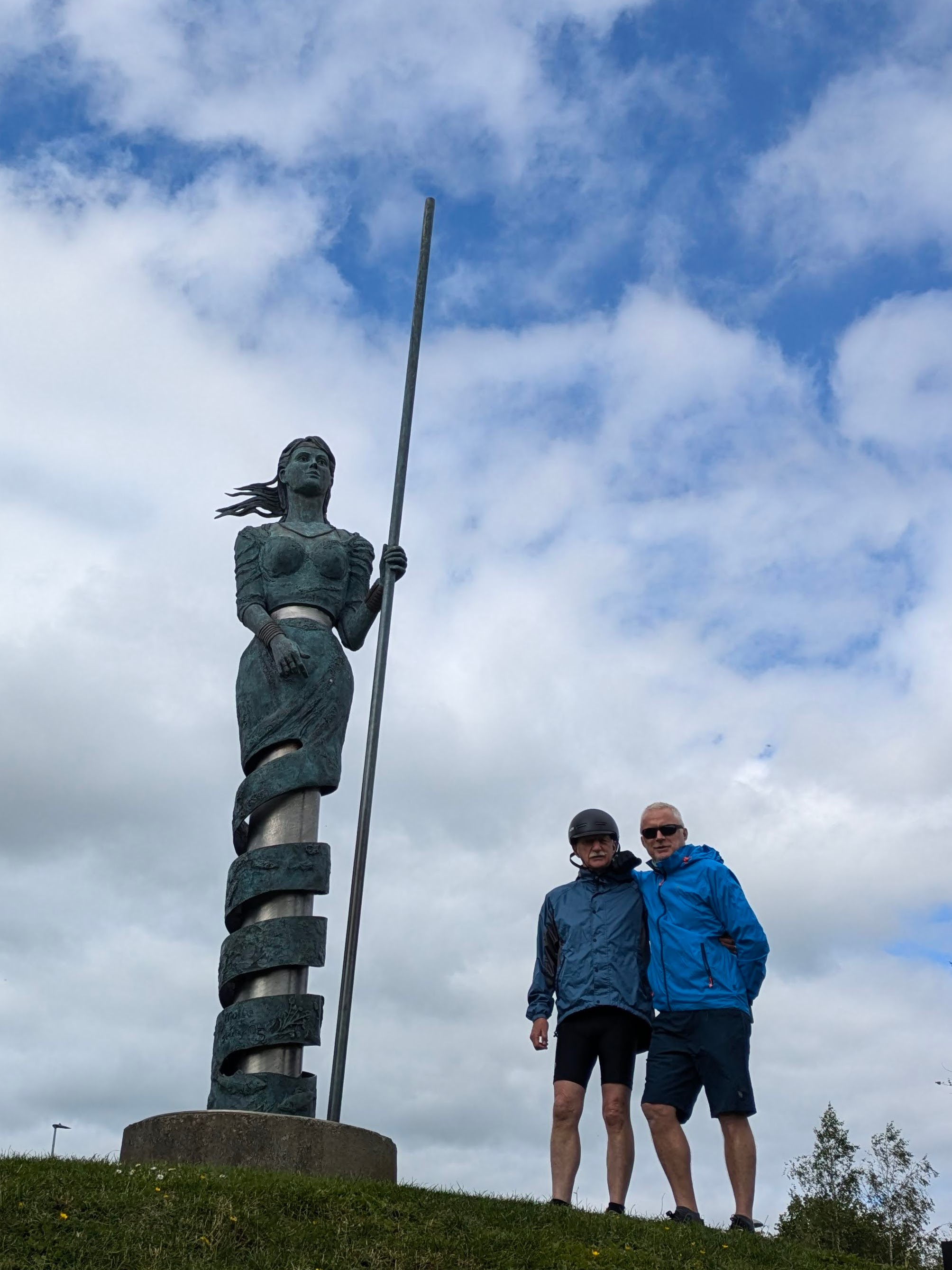 The first section of the Greenway is from Athlone to Moate (15.5kms) passing by the Crosswood Bog, a protected area because of its biodiversity and natural habitats. Moate is a lovely wide-streeted town with friendly people, especially the staff  in the Tuar Ard Coffee Shop where we stopped twice to refuel, once in either direction, with toasted sandwiches and scones. We also called to the Dun na Si Heritage Park, a large park on the edge of Moate with walkways, playgrounds,  dolmens, stone circles, sculptures and artwork.