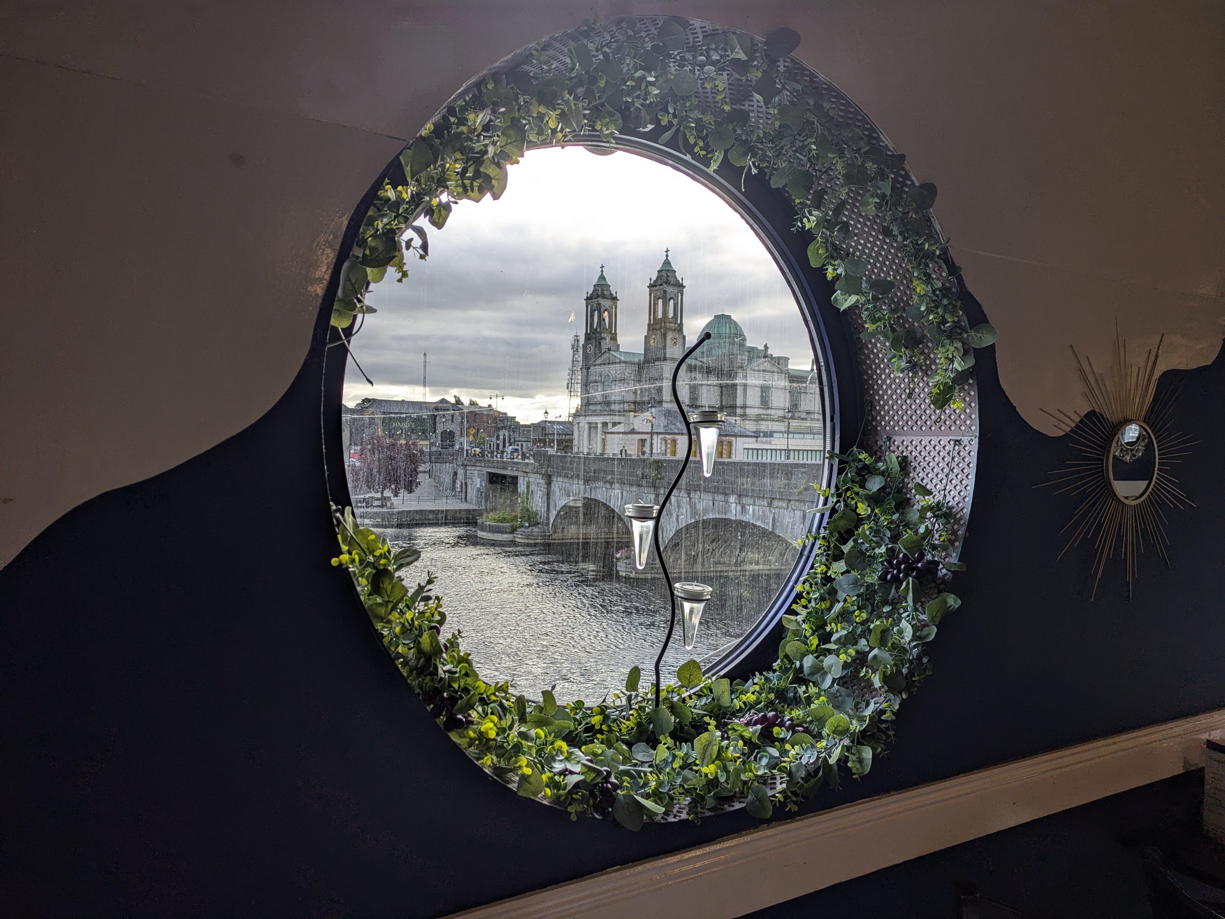 We spent our first night in Athlone,  a town on the Shannon that is full of history. It even boasts the oldest pub in Ireland, Sean’s Bar, a low-ceilinged watering hole with lots of snugs and walls adorned with photographs, maps and memorabilia. It claims to be a thousand years old and the barman told us that some tourists visit Athlone solely to have a pint in Sean’s Bar or to drink one of their whiskey blends. Athlone Castle is certainly worth a visit with panoramic views from the top of the castle and interesting interactive displays with tales of bravery and bloodshed especially during the Siege of 1690/1. Across from the Castle is the Cathedral of St Peter and Paul, a colossal basilica with gorgeous stain glass windows from the Harry Clarke Studios.