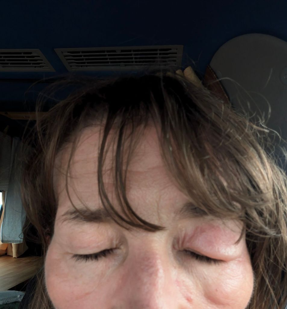 Encounters of a Small Kind Japan is an extremely hygienic place with a huge emphasis on cleanliness , partial to the liberal use of disinfectants and wearing face masks. Neither of us had any issue with tummy upsets or health concerns. One morning, I woke up in the van feeling like I had a brick over my partially closed left eye. I expected Caoimhin to say it didn’t look too bad but his reaction was one of horror. It took two days to subside. I’m still not sure what caused the spectacular inflammatory reaction but suspect a mosquito.