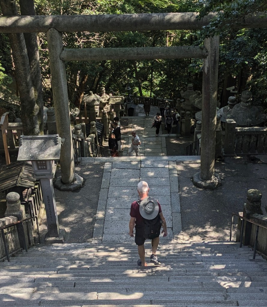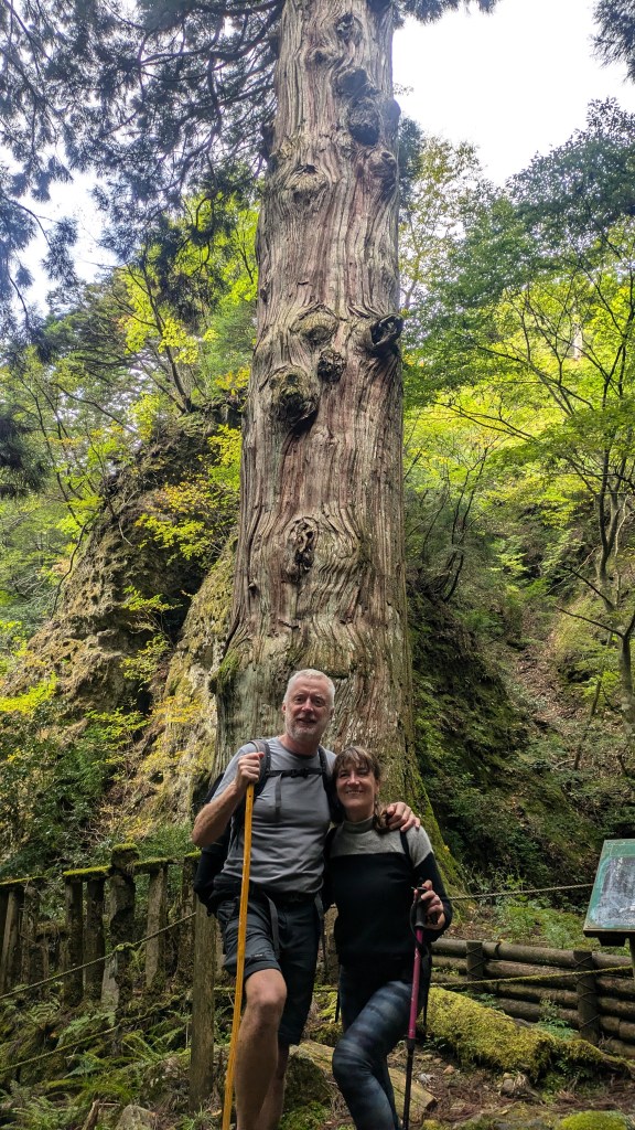 Climbing a Holy Mountain .Japan is a mountainous, heavily-forested country with many sacred mountains but for us, the most special was Mt Hiko in Kyushu, a place where hundreds of years ago, white-clothed monks trained in strenuous physical activity, believing that this was the path to enlightenment. We hiked past countless, moss-shrouded shrines towards misty summits on a glorious Autumn day with the leaves dressed in their burgundy and golden finery. This was truly a spiritual experience especially as we seemed to be the only two people on the mountain. On the way, we also paid homage of the resilience of Onisugi, a huge cedar tree estimated to be around 1,200 years old.