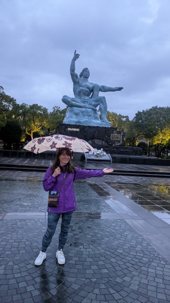 Hell on Earth. Nagasaki could be in the category of lowlights but it belongs here in the highlights. We spent two days here, the first with torrential rain which felt like it might never stop and the second with skies so blue, it almost hurt our eyes. This was almost a metaphor for Nagasaki, a beautiful city which exuded a firm belief in hope and brighter days after tragedy. Visiting the Atomic Bomb Museum was harrowing, so harrowing that I don’t think our minds were able to comprehend the immensity of it all. I will just copy here an inscription on a bridge near the centre of devastation.