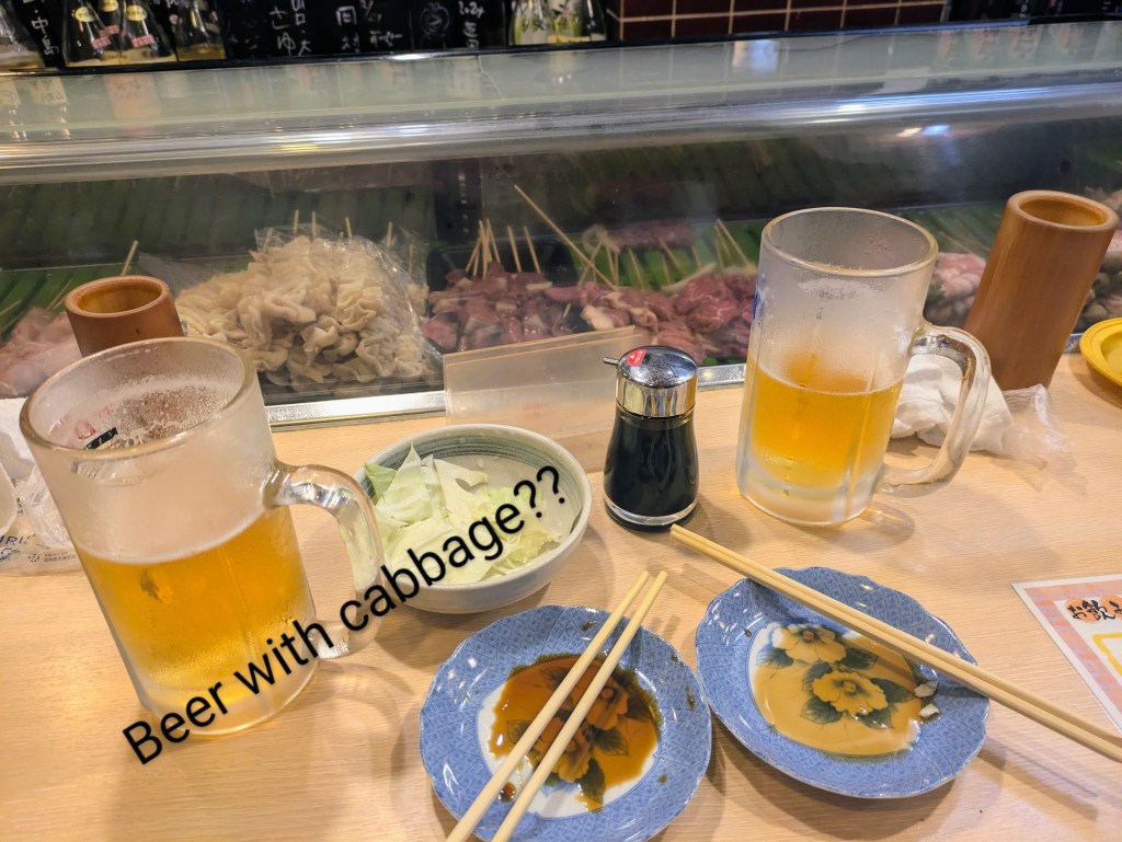 Food, Glorious Food– the food in Japan was a pleasure, a delight and a taste sensation. We had so many gorgeous meals from simple bowls of noodle soup to trays of tempura with a multitude of side garnishes. Good quality ingredients coupled with attention to detail made it special. The Japanese were very proud and fond of their ice-cream which was delicious. However, we were served raw cabbage and soy sauce to go with own beer 😁. It wasn’t as bad as it sounds but it may be an acquired taste.