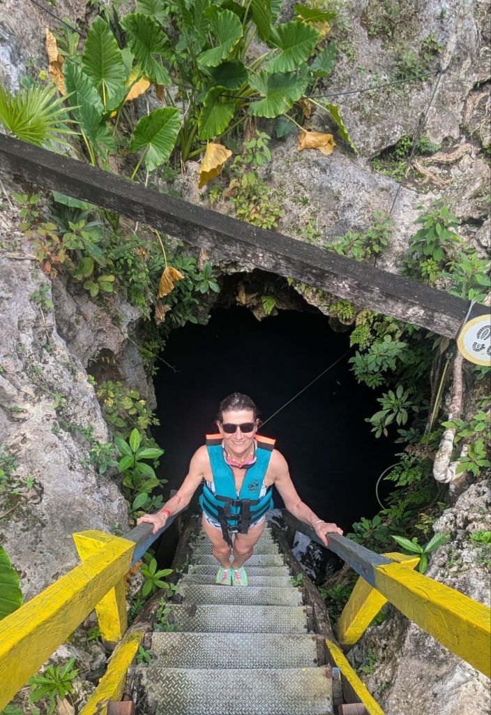 This area of Mexico is full of cenotes. We had never heard of the word until we came here but they are natural pools, formed when the limestone bedrock was dissolved by acidified rainwater and seawater. The rock sometimes collapsed in on itself, creating a system of caves and sinkholes. These provided a vital source of water but cenotes were more than a water supply to the ancient Maya who regarded them as sacred portals to the underworld.
