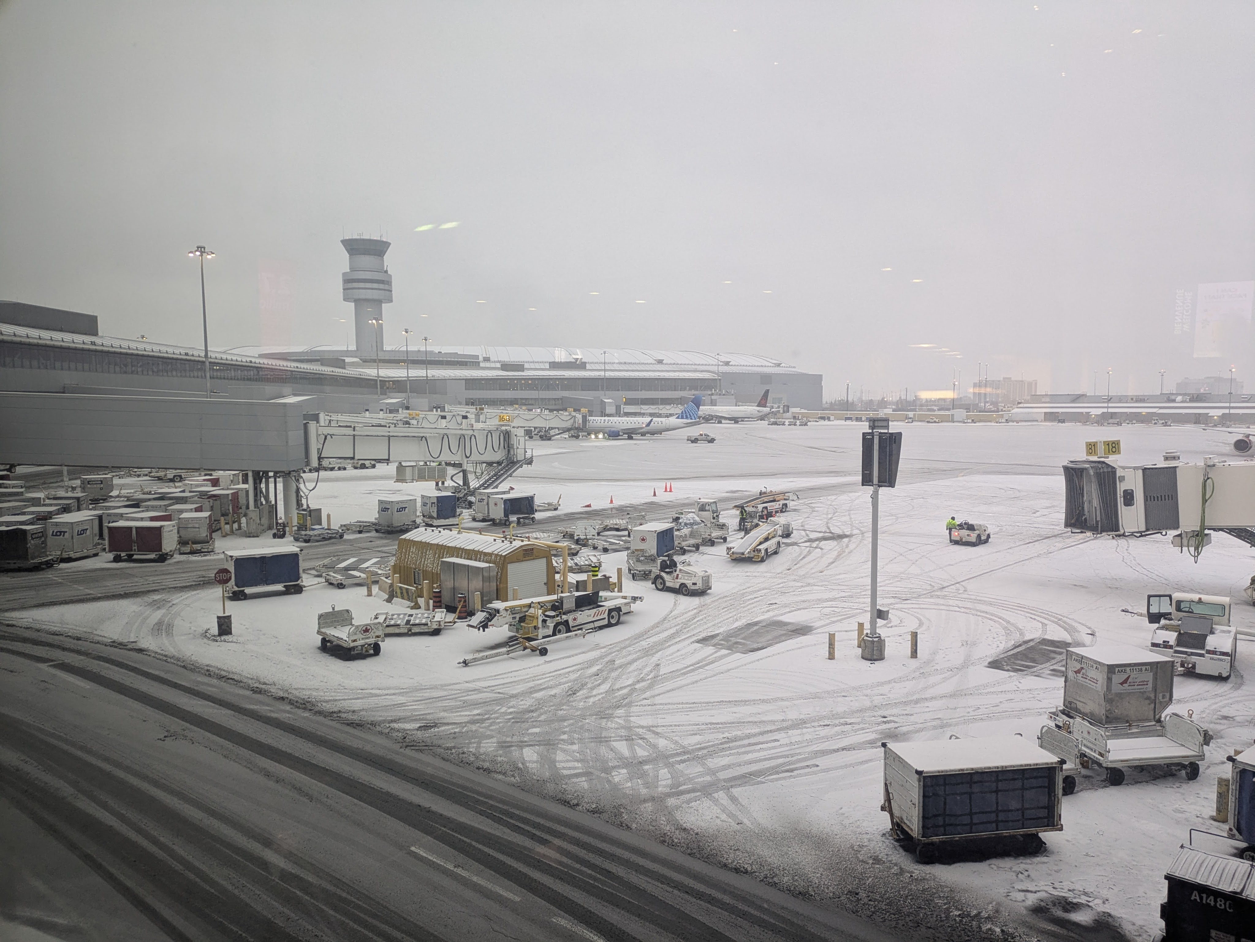 There was a long wait (about six hours) in Toronto for our connecting flight to Cancun in Mexico but this was scheduled, part of our cheap, last-minute flight deal and we had chocolate biscuits to nibble on. We entertained ourselves by reading our books, working on our laptops and watching an impressive fleet of snow ploughs spring into action to clear the runways that were turning white as the snow became heavier and the temperatures outside dipped to minus 4 degrees.