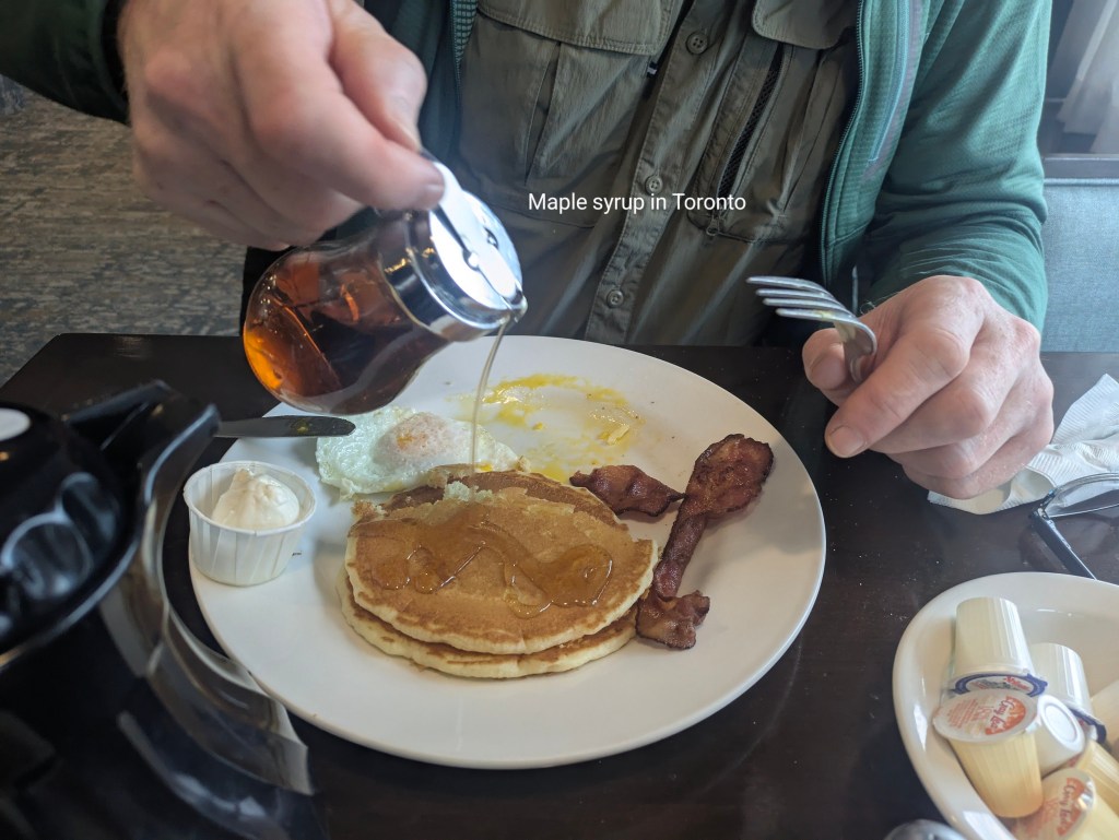 The Holiday Inn had a faded, tired look but the room was large, the bed was comfy, the shower was hot and it had a swimming pool. We didn’t do any sightseeing in Toronto, just walked in the snow around the Holiday Inn area which was a pretty dreary strip of fast food joints, hotels and conference centres. We had some fun studying Air Canada flight destinations to see where we might go to on our next trip.