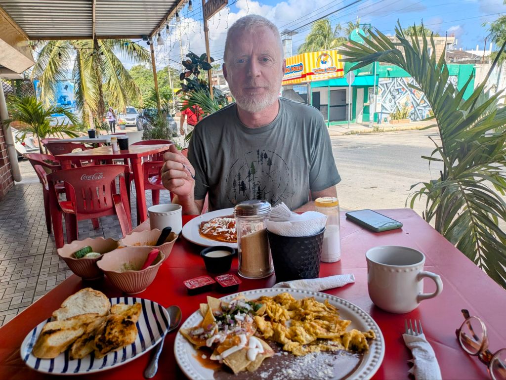 We made a minor detour to Puerta Morelos to eat breakfast and to see the Caribbean, which was a gorgeous, shimmering turquoise. The intensity of colour in Mexico is mesmerising, not only in nature with the sea-blues, the greens of the jungle, the multi-coloured flowering shrubs but the houses are also painted in vibrant shades. We even visited a cemetery which each crypt was painted in different colours, making it as colourful as a West Cork village.