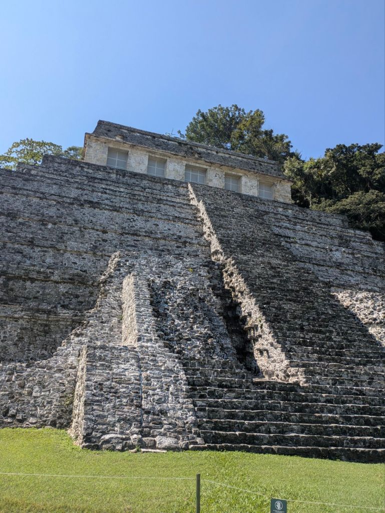 The Palenque Ruins opened at 8am and we were in the queue shortly afterwards. We paid a fee for the ruins and another to enter the National Park where the ruins were located.  English speaking guides were available, most vying for our attention, especially as the number of visitors was quite low.  The prices were fluid and bargaining was expected. We settled on Tito, a young Mayan who had good English and a nice manner teamed up with a  French mother and son duo who were also looking for an English speaking tour.