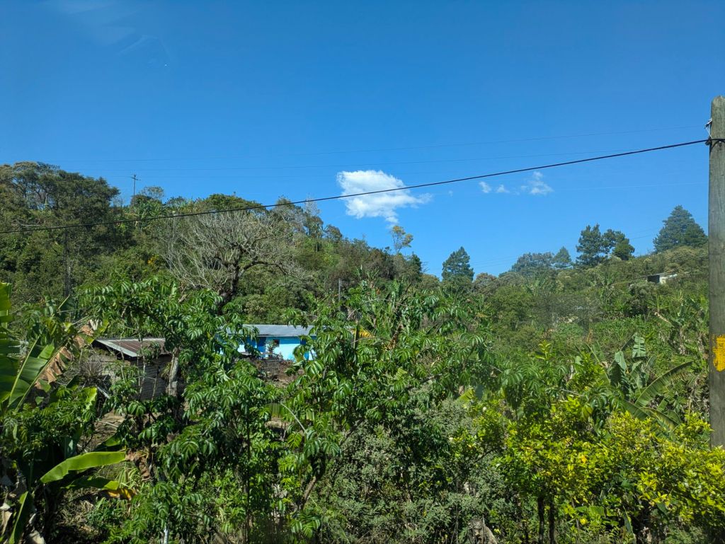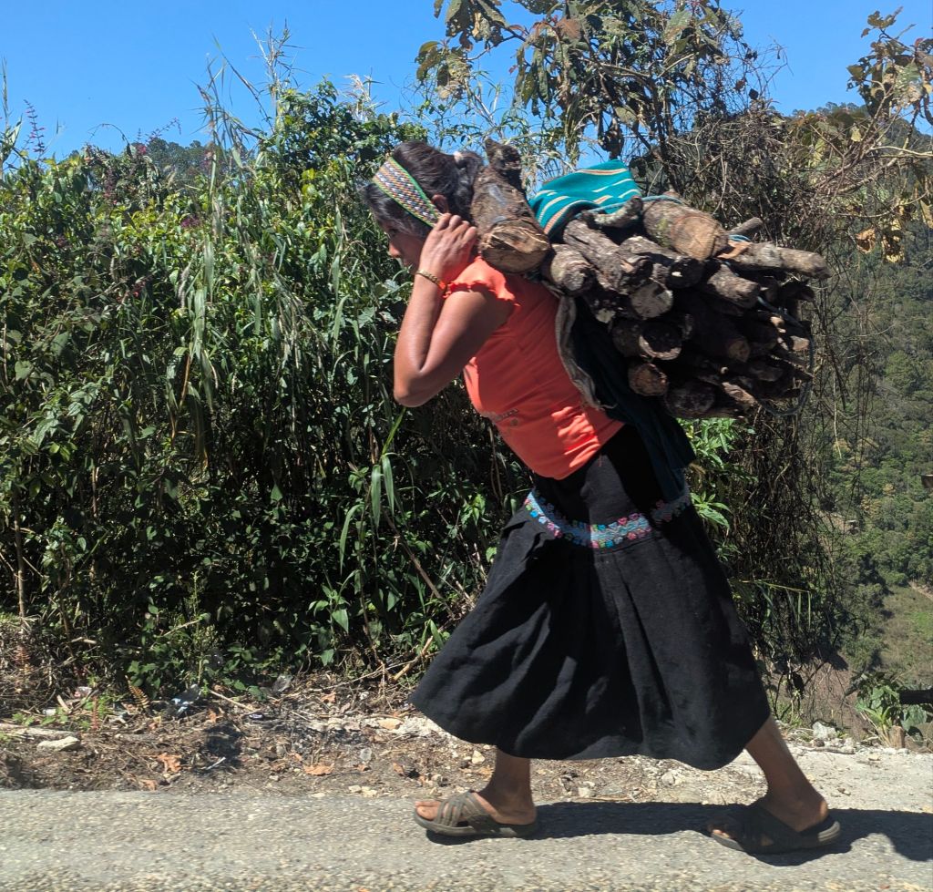 It was a beautiful, sunny morning as we packed up in Palenque and headed for the hills, feeling a little apprehensive. The distance between the towns of Palenque and San Christobell was only 210kms but Goggle Maps was giving us an estimated time of five hours and twenty minutes. At first traffic was heavy and soon we were climbing along winding steeps roads with curving bends in a convoy of trucks, minibuses and motorbikes. There were small herds of cattle grazing in the fields, maize growing everywhere, at the sides of the road and crawling  up the vertical mountain sides.  Children walked to school and women sat at roadside stalls, selling drums of diesel and petrol as there seemed to be no gas stations.  It all seemed very normal,  a beautiful drive with stupendous vistas of mountains, houses dotted in the valleys and pretty villages. Soon we relaxed although it was impossible to relax completely…but not because of bandits or protesters.