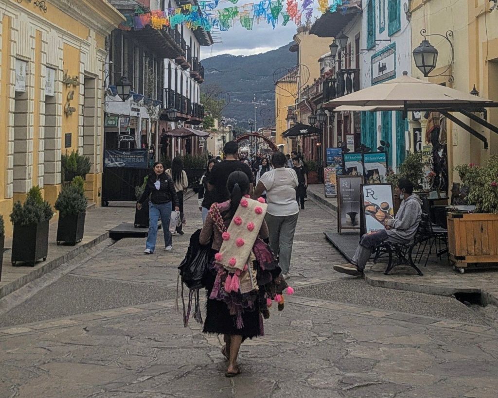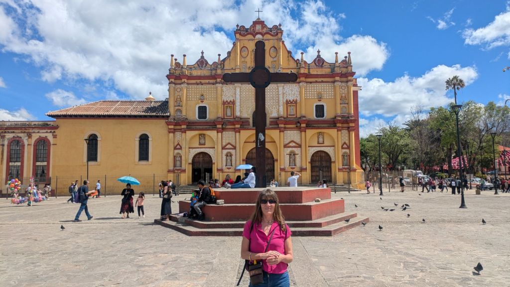 Soon there was the smell of pine in the air from the towering forests as we approached San Christobel de las Casas. The town sits in a valley in the highlands of Chiapas in the Los Altos region at an altitude of 2200 metres. It was sunny but there was a tinge of coolness in the breeze even in the mid-afternoon which soon had us reaching for our jackets which we haven’t needed since we arrived in Mexico.