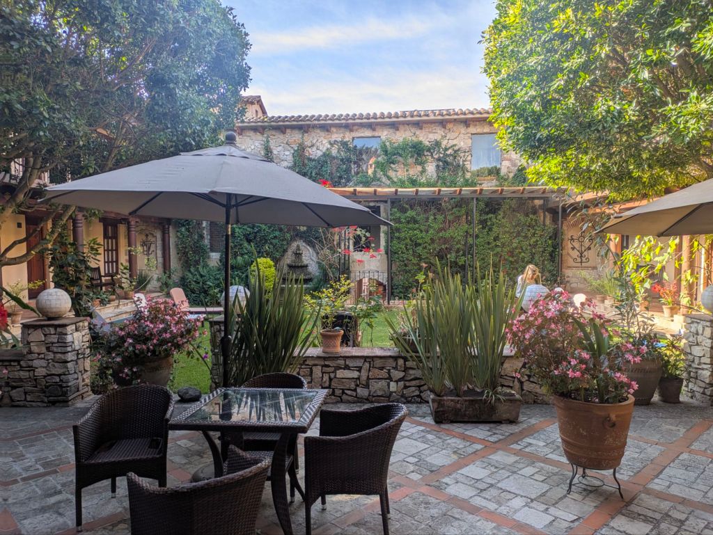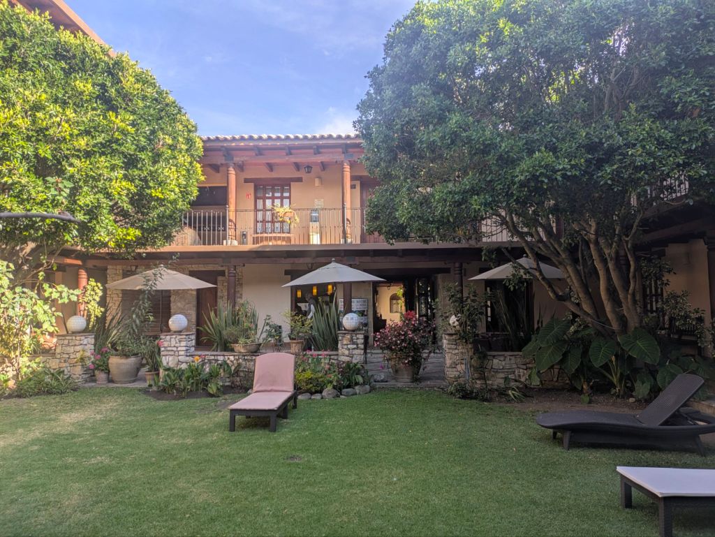 We booked into La Estancia, a hotel in a central location. It didn’t look much from the outside, a green door in a low single story building but inside, it opened up into a series of courtyards full of plants,  shady sitting areas and lots of rooms with balconies overlooking the courtyards. We were delighted with the luxury, 5 star accommodation at 2 star  prices (€40 a night). They also had an offer of 2 cocktails for 140 pesos (about€7) which was something we availed of seeing as it was Valentines Day and we were now wearing  matching wedding rings. There are tourists here but many are scared away by the simmering political tensions which probably explains the low prices.