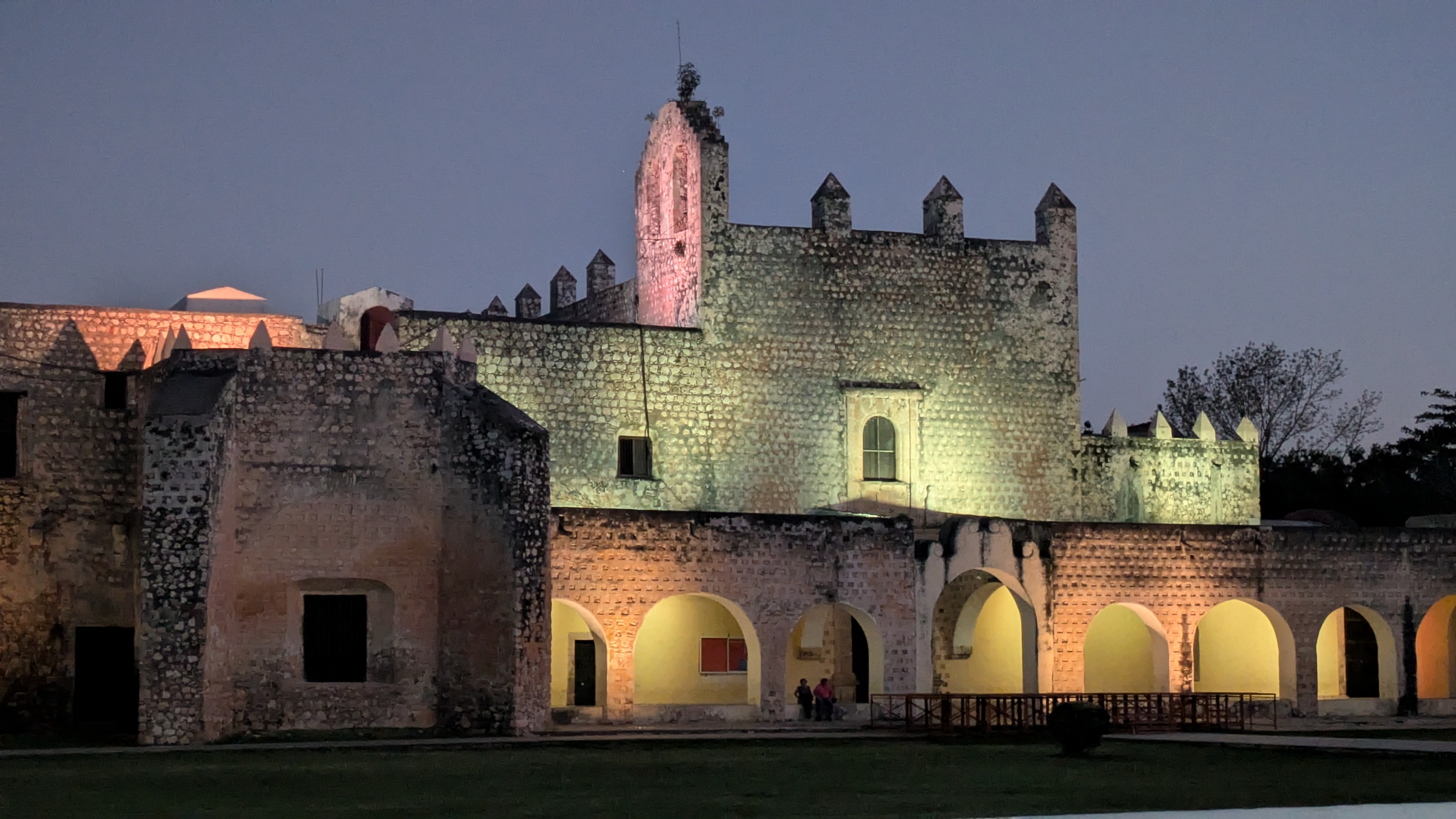 The walking tour of the Valladolid took us from the church in the main plaza to the Convent of San Bernadino, an imposing structure and one of the oldest examples of colonial heritage in the Yucatan.  We sat on the stone wall on a balmy evening watching a sound and light show recreate the history of the building and town in a series of images on the stout walls.