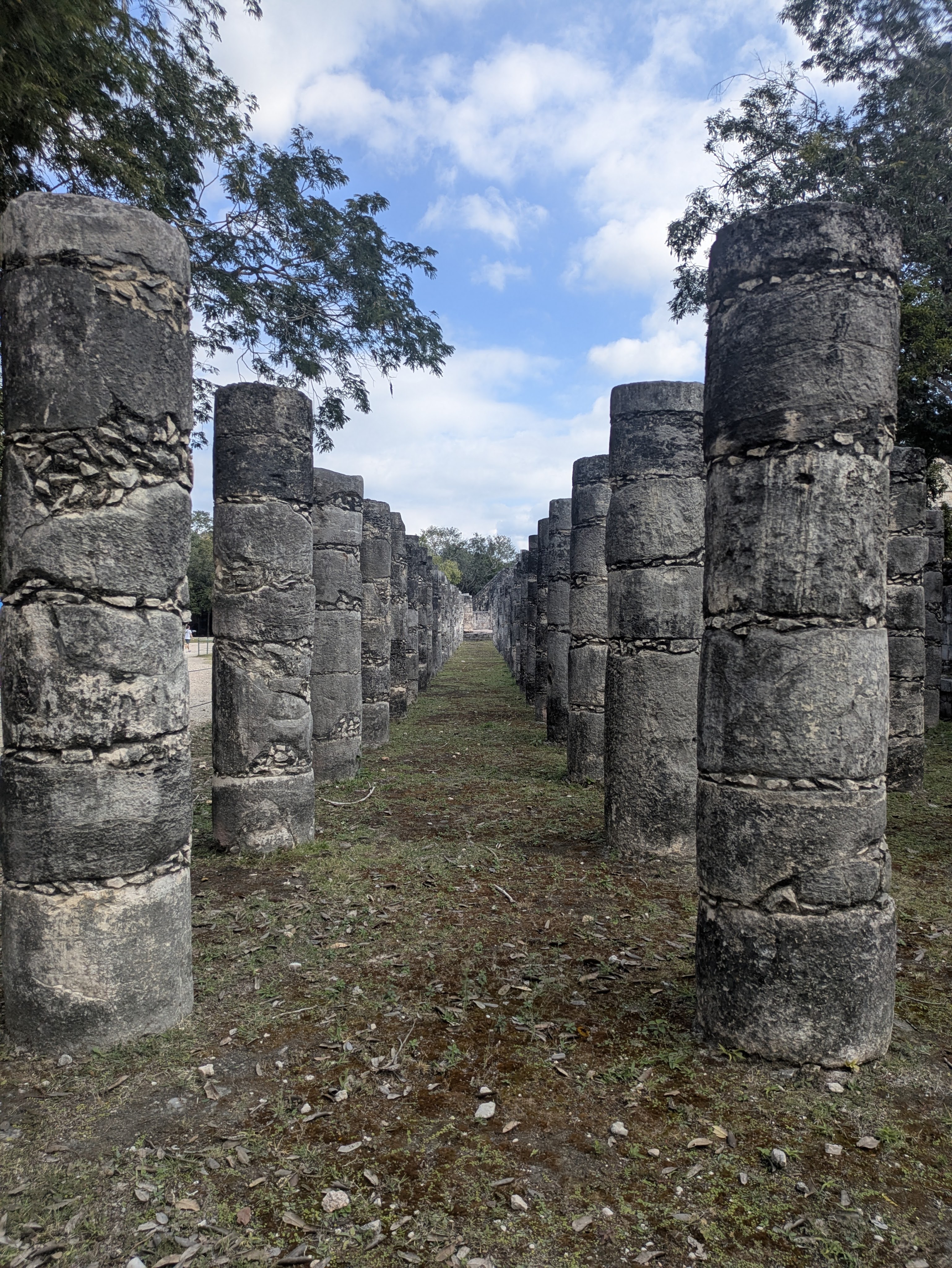 The site was occupied for thousands of years but was a major power between 800 and 1200 AD. The giant pyramid, El Castilla, a huge stepped pyramid dominated the site.  At sunrise at the spring and autumn equinox, an interplay of light and shadow gives the impression of the body of a rattlesnake slithering down the giant balustrades of the pyramids, becoming reunited with the stone serpent’s head at the bottom. That must be an extraordinary sight. The Maya were really in tune with the skies, with an extremely accurate solar calendar and their ability to integrate astronomy into the architecture of their temples and monuments.
