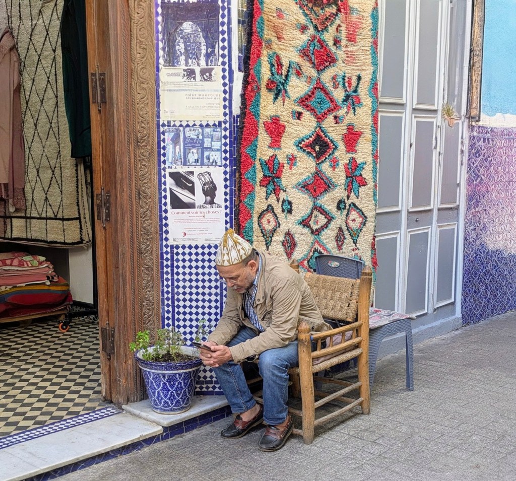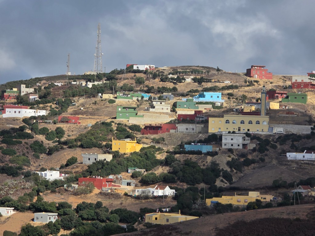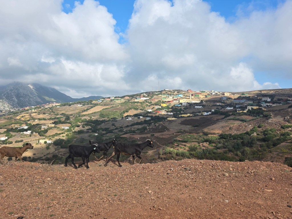A row of white taxis hovered around the border gates, a couple of dogs barked and ran uphill after the van, while several head-scarfed women sold fruit, laid out on the ground on colourful blankets. We kept going, wanting to get away from the border as quickly as possible. Thankfully, the e-sim we purchased from Revolut for Morocco activated, so we had mobile data on our phones without the hassle of haggling for a physical sim.