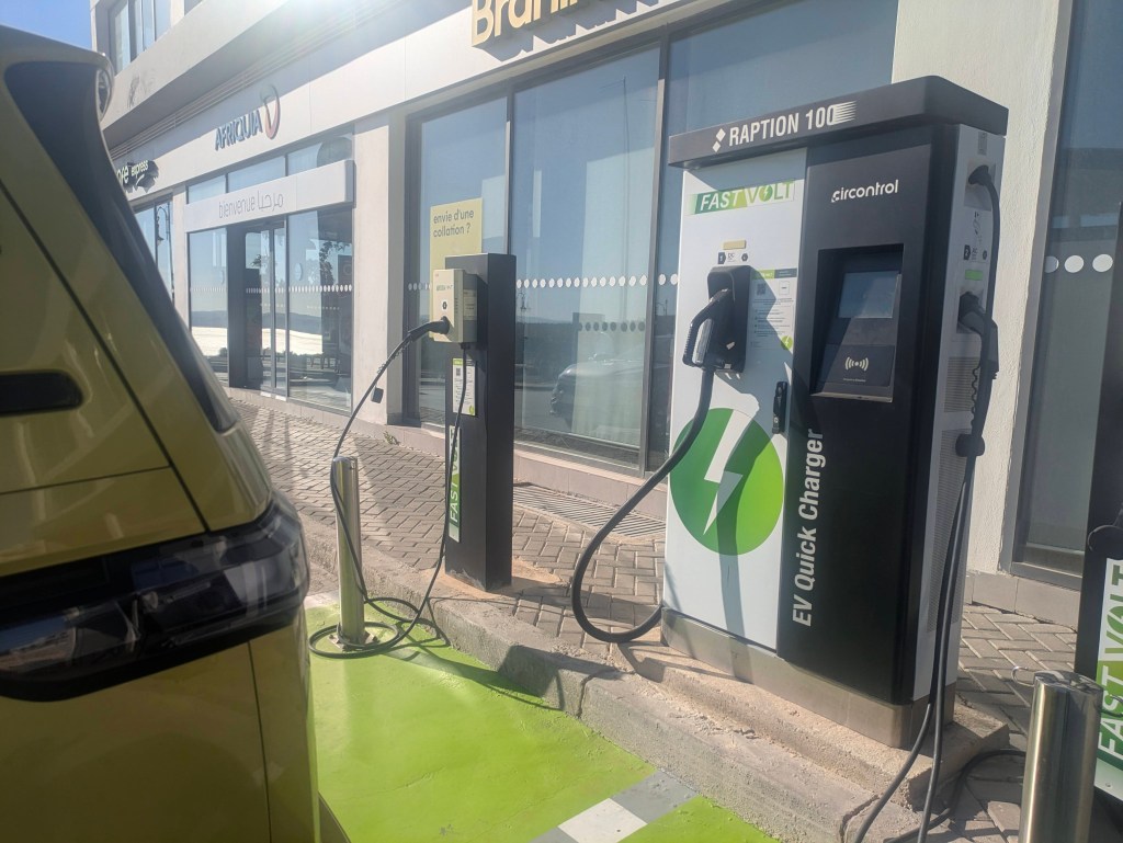 The road surface was excellent and the scenery was ruggedly beautiful with brightly painted, flat-roofed houses with mountains casting light and shadows. Although we were fully charged, we wanted to check out the Moroccan EV chargers, just to see if charging would be an issue so we headed in the direction of Tangier. The drive from Ceuta to Tangier was spectacular with the backdrop of the Rif mountains with small towns and some beautiful white-sandy beaches.