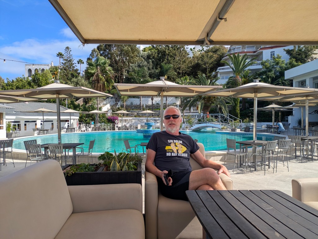 We headed to a Google campsite, Miramonte Camping, in need of a lie-down after the stress of the day and were welcomed by Said, in perfect English The campsite in a hilly location was really a resort complex with three swimming pools and stunning views of the Med. We feared it might be way above our budget but it was about €19,50 a night, which, although expensive for Morocco ,was excellent value for us.