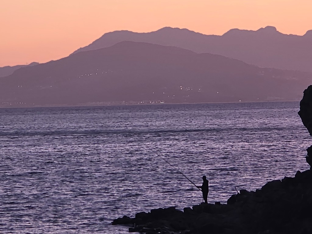We had booked our ferry back to Algeciras in mainland Spain for the following morning, allowing plenty of time in case of border delays which thankfully hadn’t materialised. We climbed out of the city towards a cove on the northern end of the promontory, near the lighthouse. On the map it looked like a quiet spot for some wild camping but we had no idea how gorgeous it was until we got there. A winding steep road led down to the glittering sea. A few families sat on the stony beach, a couple of fishermen cast their lines from the rocks. I changed into shorts (which hadn’t even come out of my bag in Morocco) and we had a picnic of cheese and olive sandwiches and chilled white wine in the sunshine. simple pleasures in an idyllic spot.
