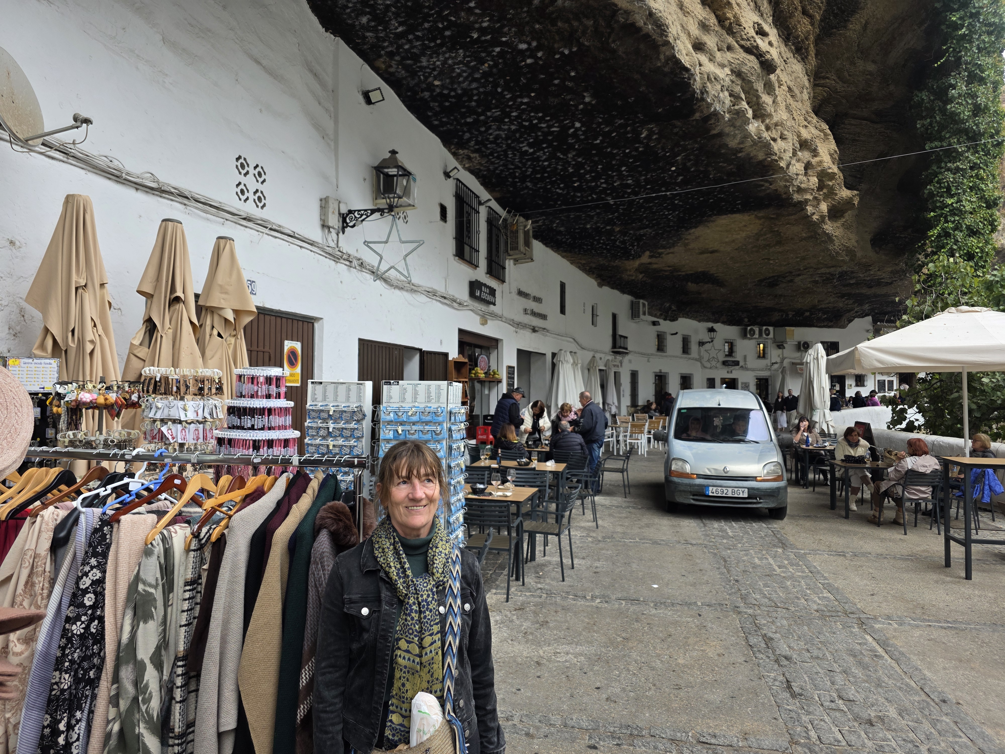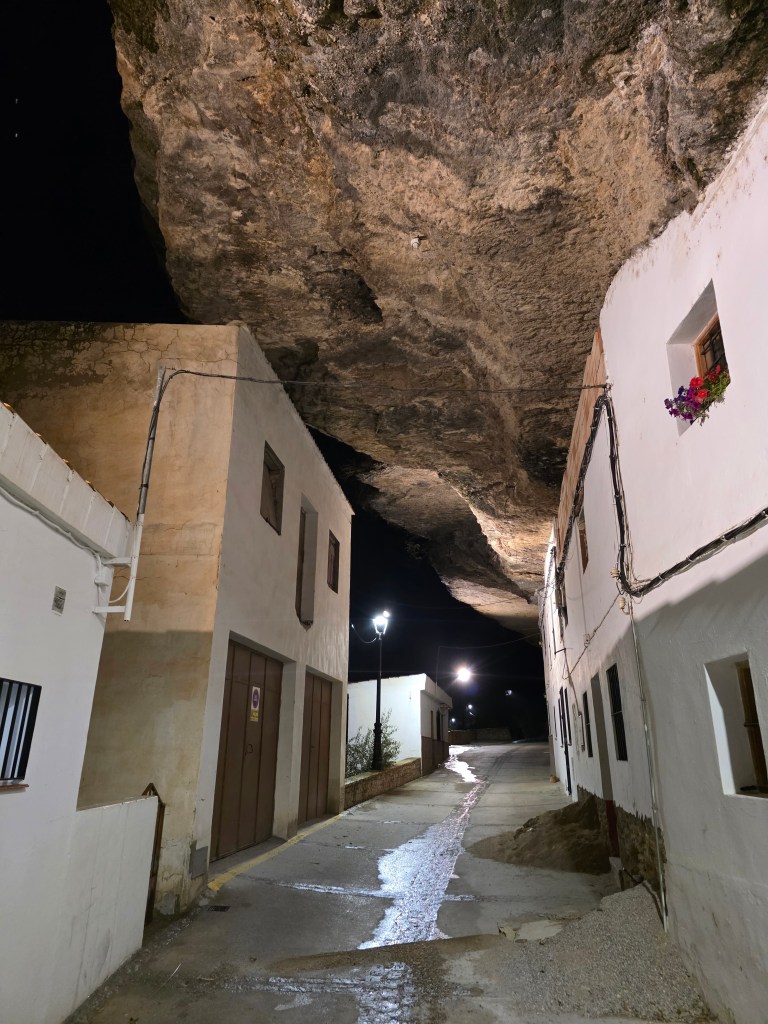 The rain became heavier as we headed to strange village, Sentinil de las Bodegas, where many of the houses were troglodyte, built from caves or snuggled under rocky overhangs and surrounded by olive and almond groves, These rocky overhangs were useful as a natural umbrella from the rain which bucketed down as if it would never stop. The wind tunnelled up the narrow laneways, sending locals and tourists running for shelter. The place has been inhabited for centuries and its topography made it difficult to conquer….it took seven sieges before it fell in Catholic hands in the fifteenth century. The following morning, there was a few blue-skied moments before the skies turned dark again.