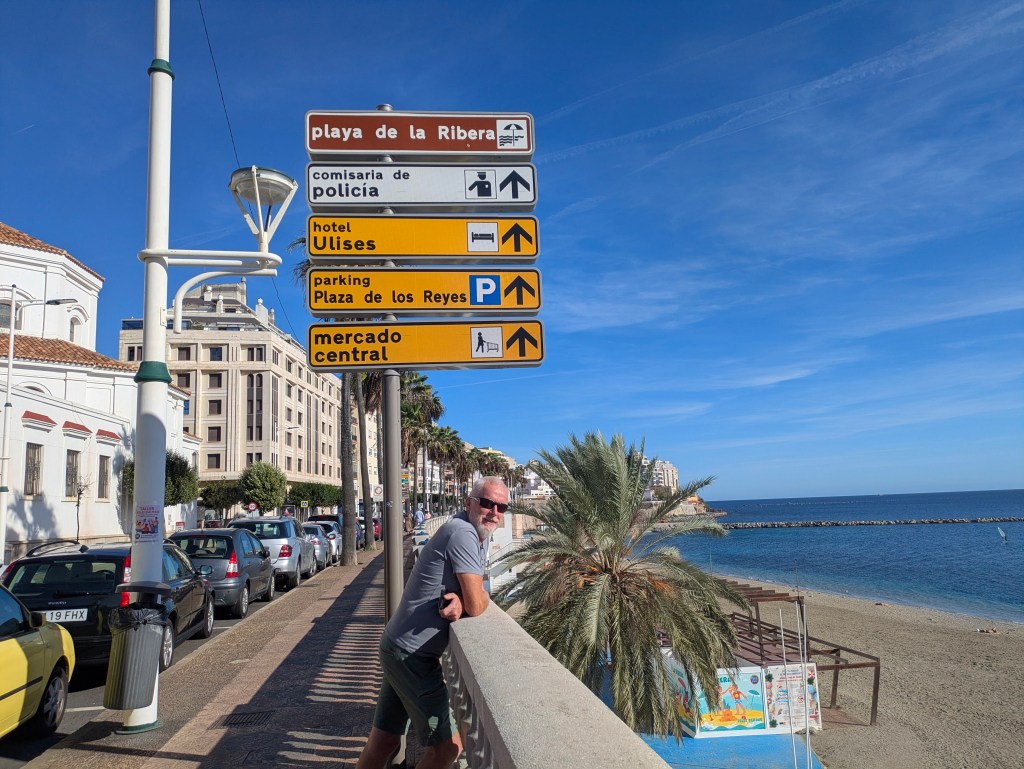 We had changed countries, that was obvious. Although Ceuta was unabashedly Spanish. The bells of a Catholic church rang out, a woman clutching a water bottle, jogged by the waterfront dressed in a tank top and shorts, a large poster outside a discount store brazenly advertised deals on liquor. All things so normal that we hadn’t even noticed on the way through three weeks ago but which now seemed strange and drew our attention. Ceuta was a handsome place, benefitting a city that was prized and fought over down the centuries. Now it was full of outlet stores, stout Roman fortifications that were beautifully restored, and views of the heavy ferry traffic crossing the Strait of Gibraltar. Lidl was as crowded as if its Christmas Eve with people piling everything from crisps to persimmons which were on offer. There’s no Lidl in Morocco but plenty in Spain so we were unsure of the clientele except that there were plenty of Muslim women,