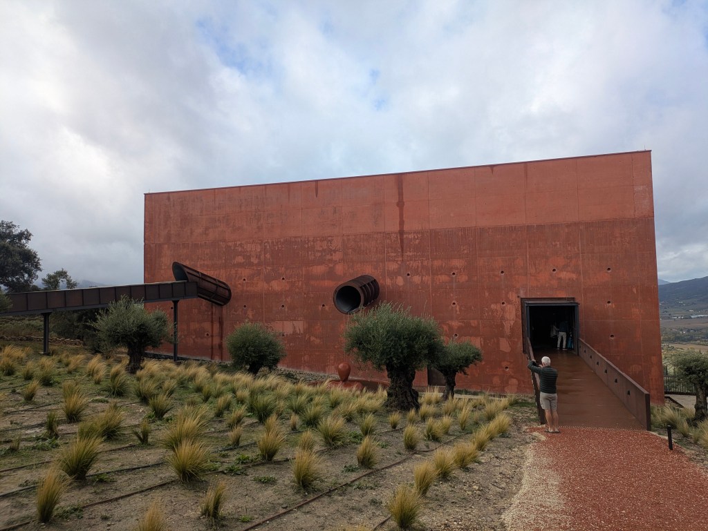The road to Ronda was shrouded in mist – I’m sure the scenery was gorgeous – but we couldn’t see it, we could barely see the road. The mist and the fog cleared after a while but the rain continued. We diverted to La Almazara Olive Mill, an impressive, architecturally-designed building, just outside Ronda, to learn more about olive oil and the olive trees that we see everywhere. Spain is the world’s largest producer of olive oil but its strange thing that the olive oil in Spain, even in the supermarkets is far more expensive than at home.