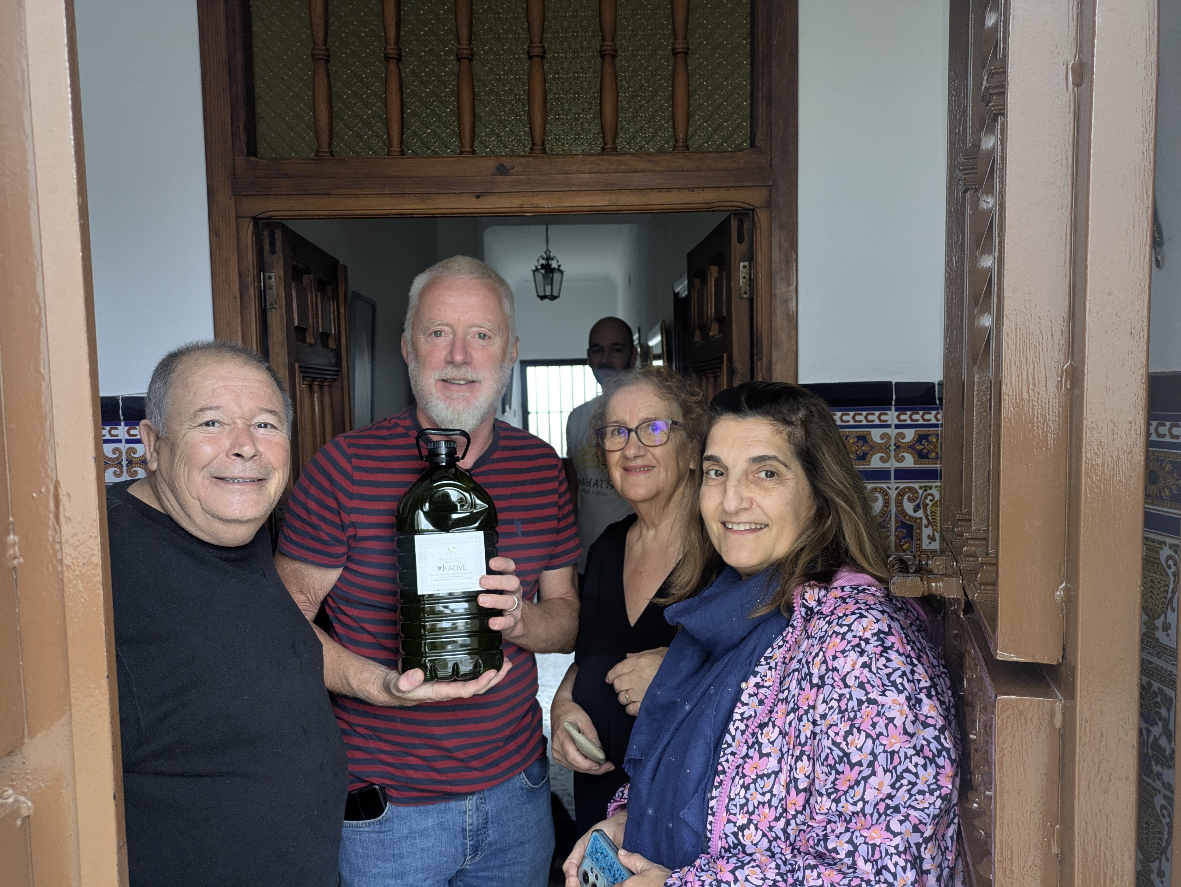 Storm Claudia has a long reach, sweeping from the Mediterranean and Southern Spain all the way to Britain and Ireland. On this very wet Saturday morning in Spain, we are now ensconced in the warmth of Luz and Andreas’s house in Hornochuelos, a little town northeast of Seville. Lucky us! They even managed to source olive oil for us from a lovely, local grower with a passion for olive oil production, producing small quantities of organic oil from her own farm which she delivered to our door with enthusiasm and even photos of the beloved trees. All this love and attention produces oil that tastes rich and creamy, totally superior to anything we buy at home.