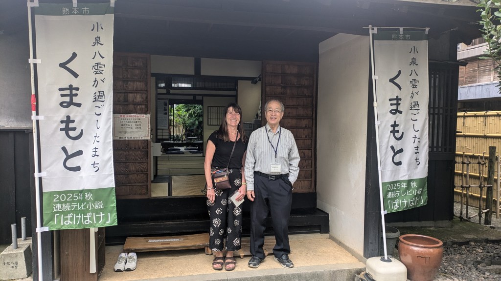 Making Connections  ……No matter where you go in the world there are always connections to home. We visited the Lafcadio Hearn Museum in the city of Kumamoto. In the mid 1800’s having an Irish father and a Greek mother,  Lafcadio spent many boyhood summers in Tramore, Co Waterford just a few miles from our home. The gorgeous Lafcadio Japanese Gardens in Tramore were established in his memory.  He was enthralled by Japan, setting up home there and he is still reversed in his adopted country because of his writings and translations.