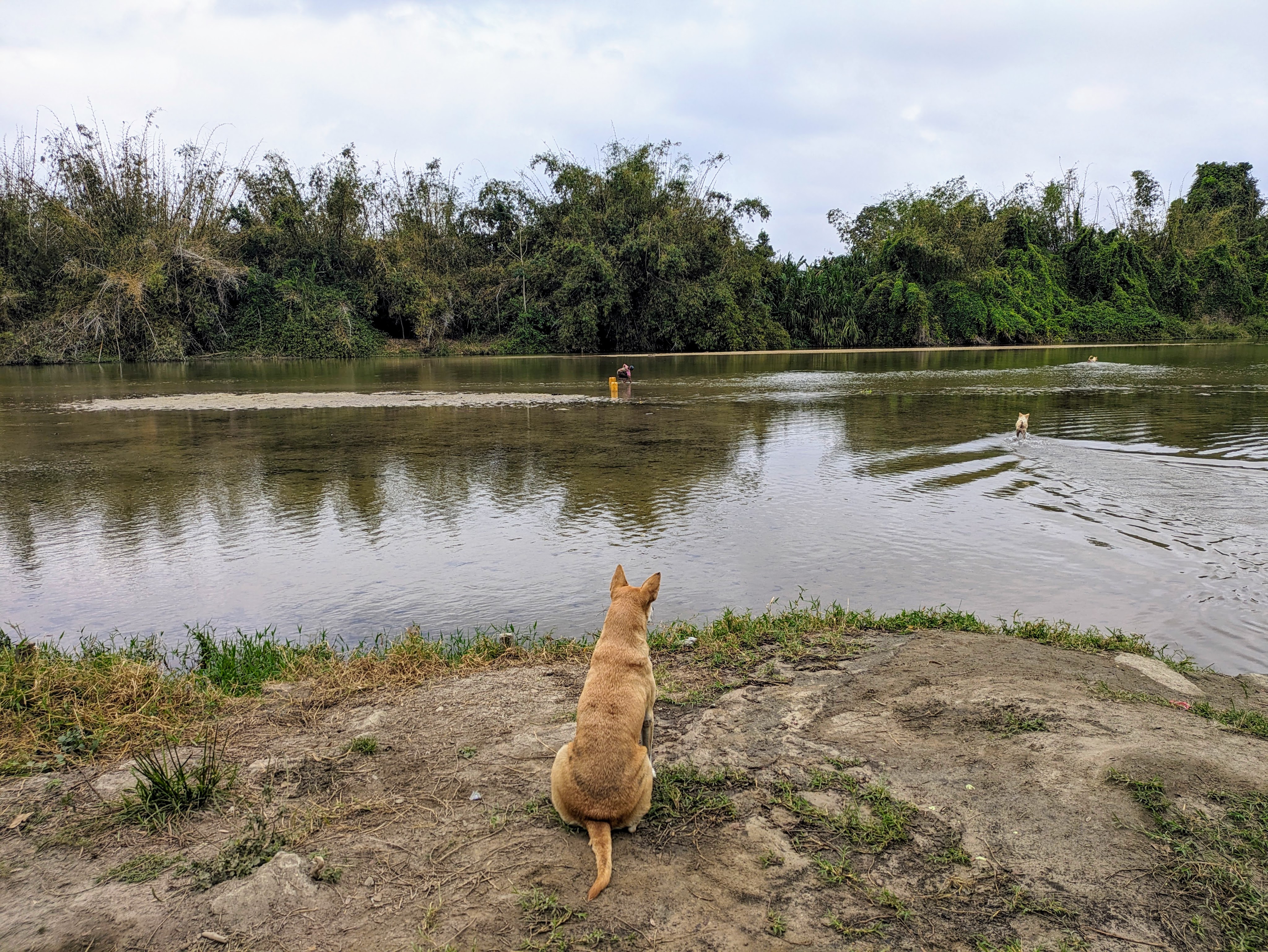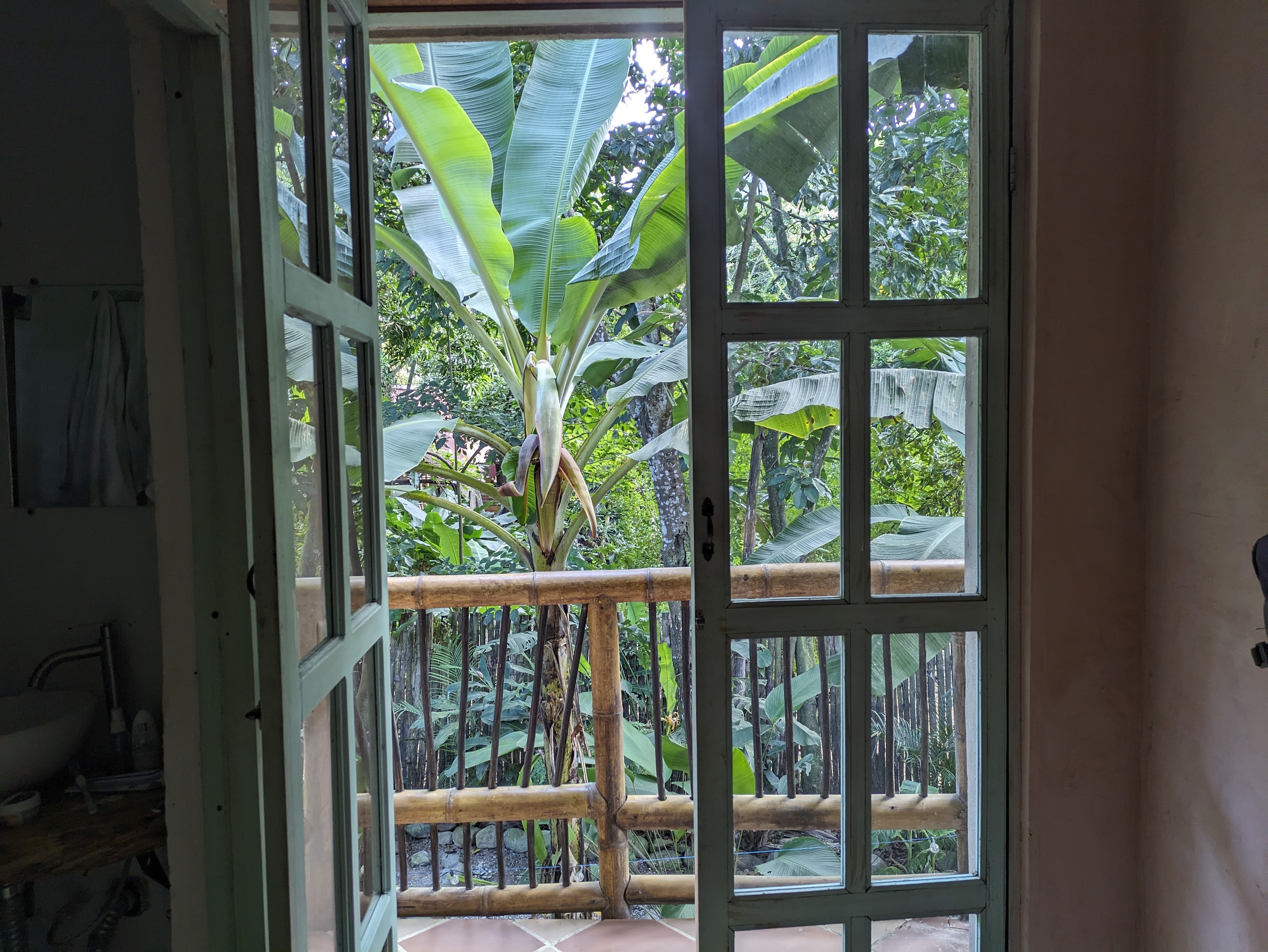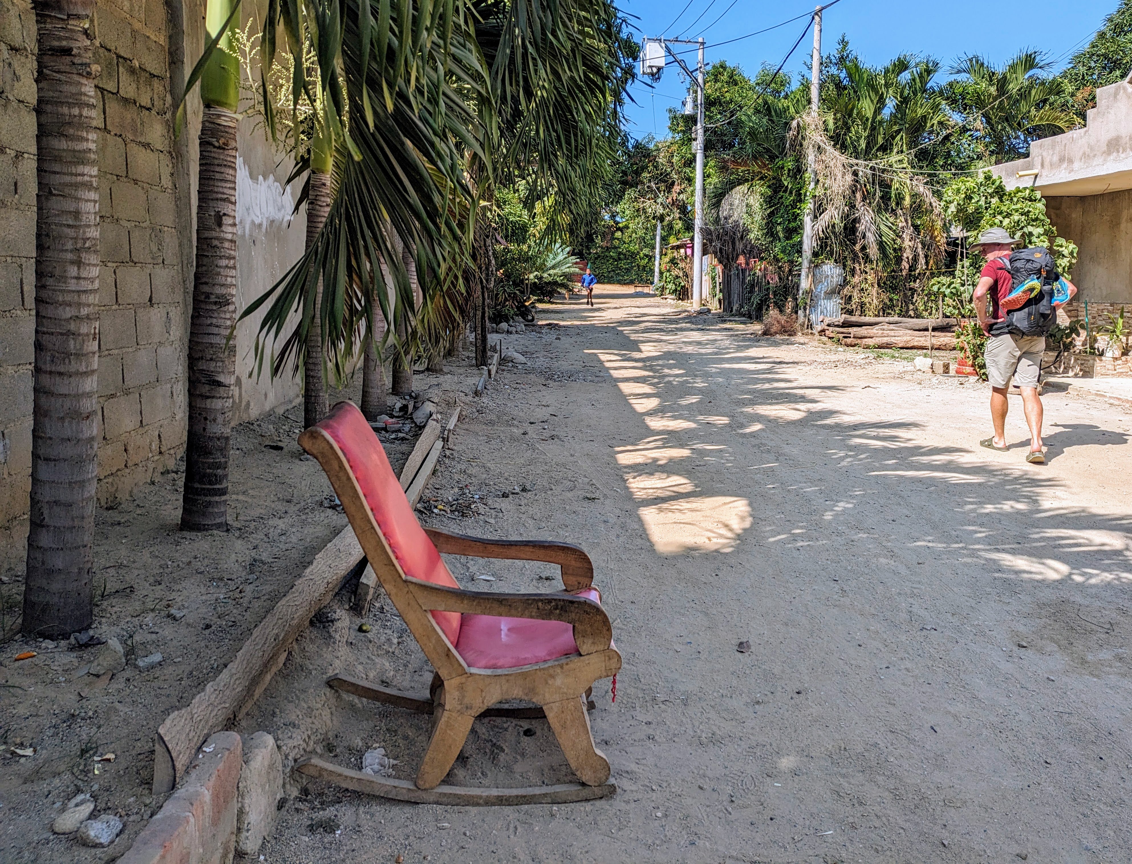 A little outside the town, we spotted a sign for Hotel Hniu Li, pointing down a little track off the highway. It looked good, a double story buildings with a breezy balcony on the edge of a field of maize with a few banana trees in front. There was no reception area but an old woman called to us from the doorway of a little shop on the corner. She told us that the room was 500pesos for the night( less than 25 euros), cash, with no signing registers or checking of passport. The room was small bit adequate, spotlessly clean but the bathroom was jaw-droppingly gorgeous, like something out of an upmarket spa, almost as big as the bedroom with polished stone walls and lashings of high-pressure hot water, It was perfect……just what we needed. A dog called Lala befriended us and the woman in the shop who sold beer but didn’t have any cold ones, put two in the freezer for us.